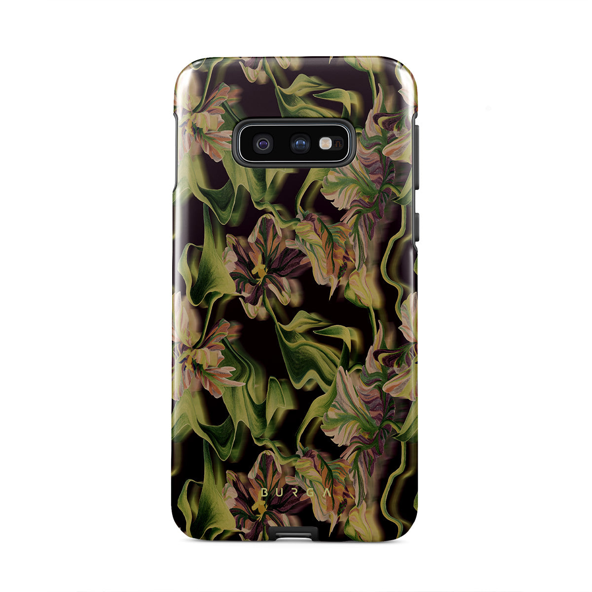 Let's wander into the world of humidity, fog, and deep green color. Our Subtropical Samsung Galaxy S10E phone case will add that exotic touch to your life. The flower pattern is as clear as it seems to be melting away. The purple and orange shades in the flowers will add that subtle splash of color to your style without being too provocative.