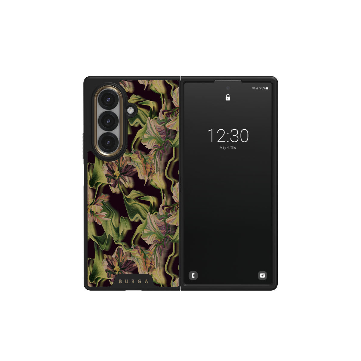 Let's wander into the world of humidity, fog, and deep green color. Our Subtropical Samsung Galaxy Z Fold 7 phone case will add that exotic touch to your life. The flower pattern is as clear as it seems to be melting away. The purple and orange shades in the flowers will add that subtle splash of color to your style without being too provocative.