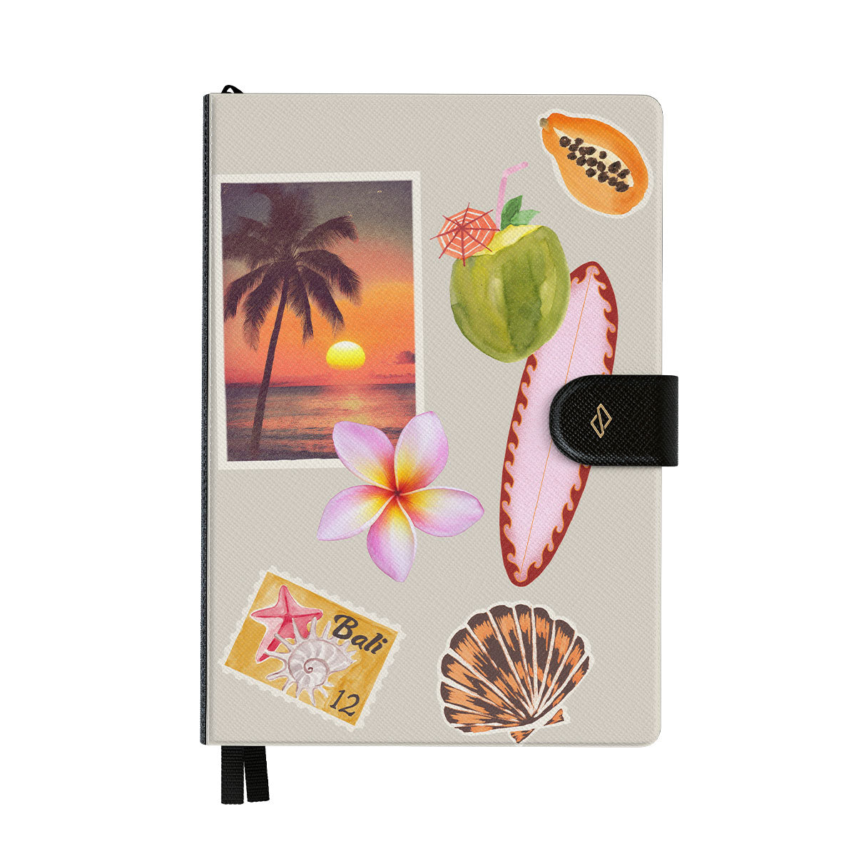 Wrapped in sleek vegan saffiano leather and secured with a sleek magnetic clasp, it's durable enough to handle coffee spills and life's little oops moments.