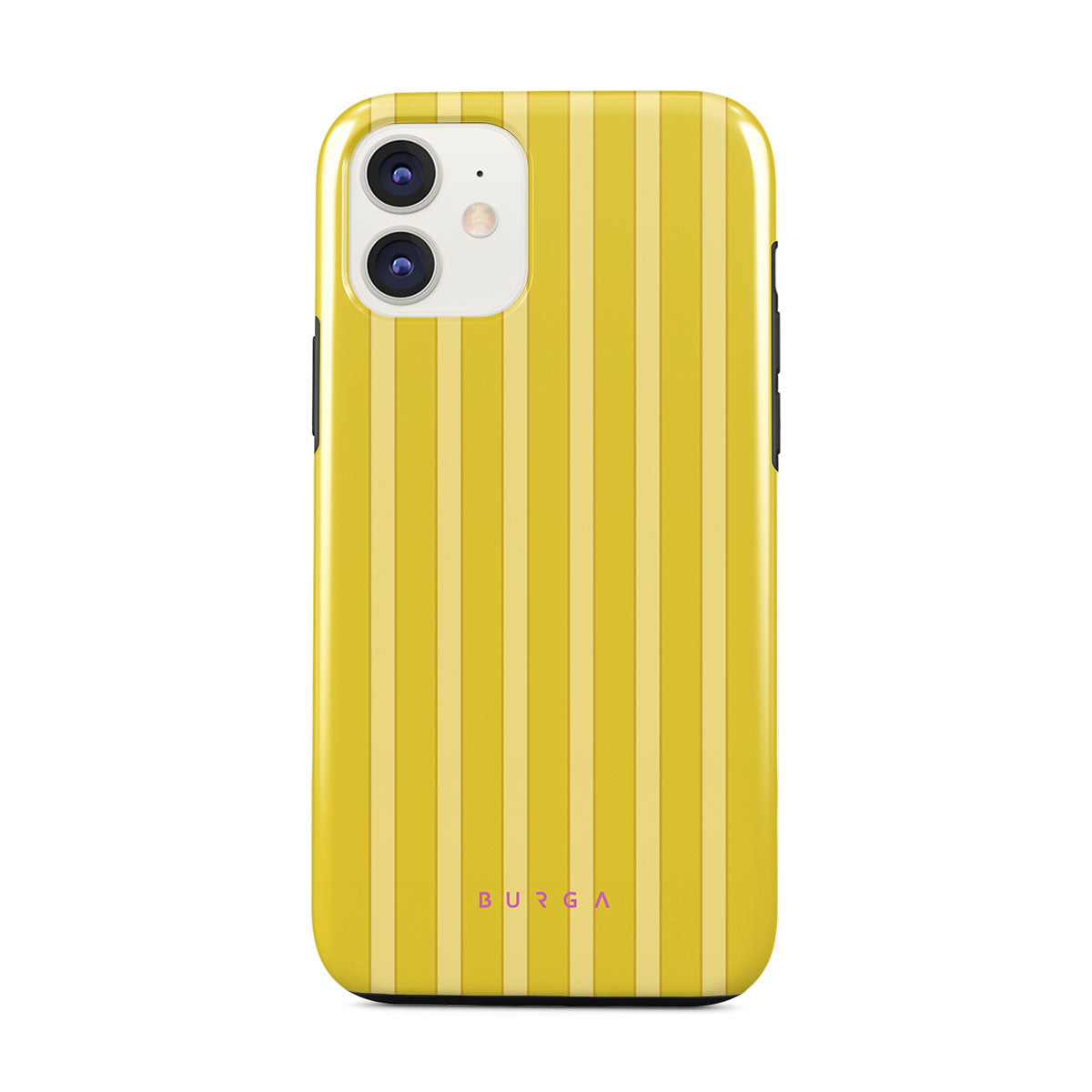 Bask in the glow of Sunbreak. This iPhone 11 phone case design features bold yellow stripes, reminiscent of beachside cabanas and sunny summer days. It’s a chic celebration of joy and simplicity.