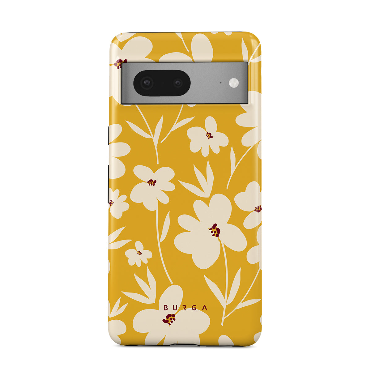 Full of fresh produce, warm rays of sunshine, and relaxing moments, our Sunday Market Google Pixel 7a phone case encase all of this! The vintage mustard-yellow background with beautiful creme flowers will add that soft floral touch to your wardrobe while protecting your device from unexpected falls!