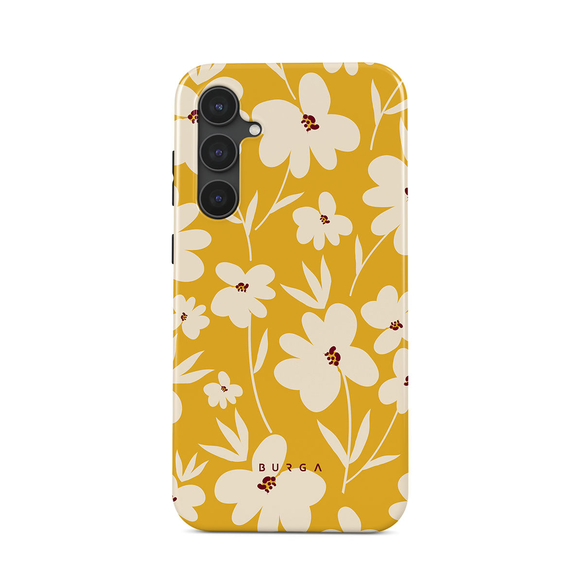 Full of fresh produce, warm rays of sunshine, and relaxing moments, our Sunday Market Samsung Galaxy S23 FE phone case encase all of this! The vintage mustard-yellow background with beautiful creme flowers will add that soft floral touch to your wardrobe while protecting your device from unexpected falls!