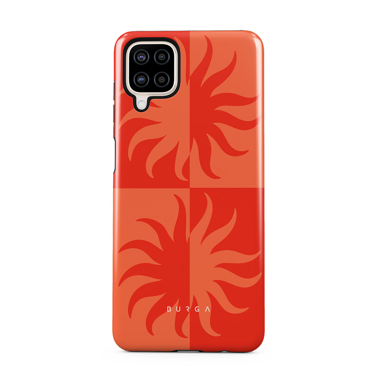 Feel the warmth with this fiery orange Samsung Galaxy A12 4G phone case design adorned with bold, radiant hues. Sunkissed captures the vibrant energy of sun-drenched days and the intense beauty of a tropical paradise. Perfect for those who love to stand out.