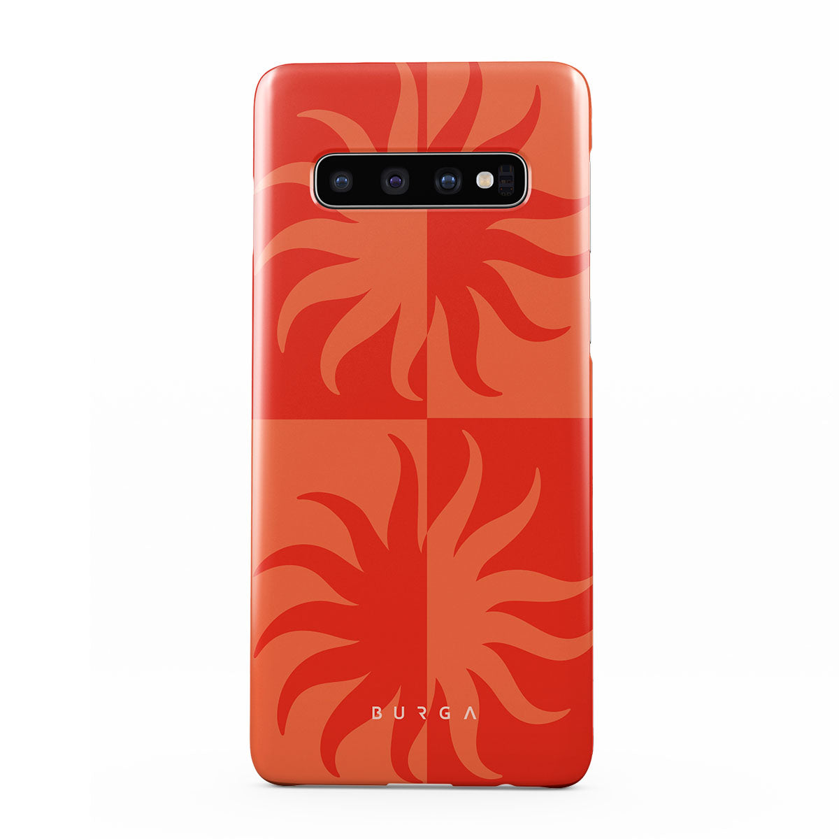 Feel the warmth with this fiery orange Samsung Galaxy S10 Plus phone case design adorned with bold, radiant hues. Sunkissed captures the vibrant energy of sun-drenched days and the intense beauty of a tropical paradise. Perfect for those who love to stand out.