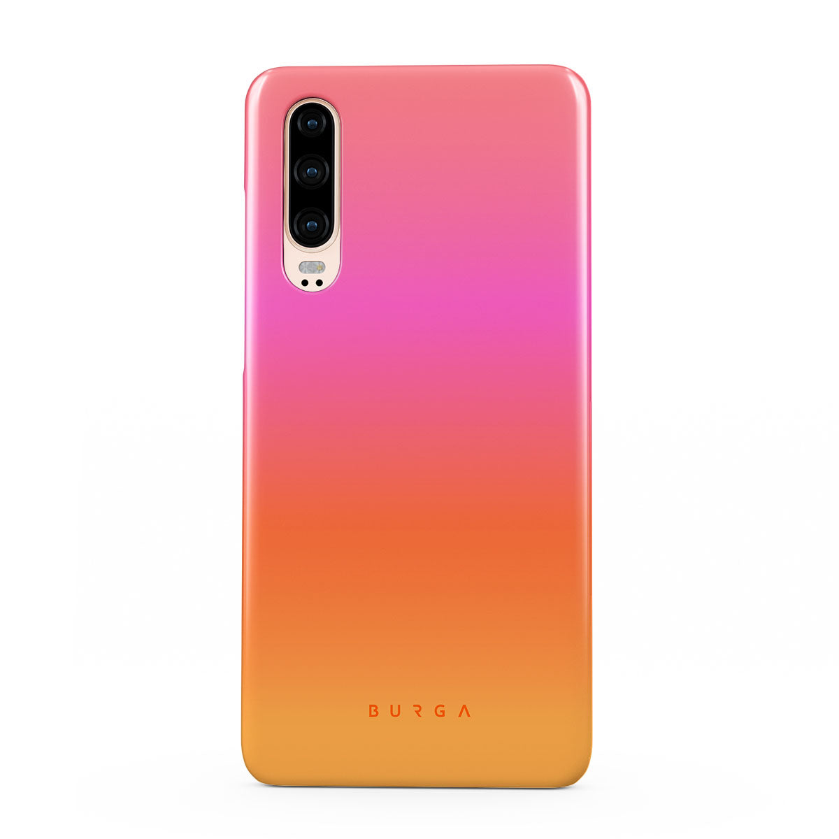 This Sunset Club Huawei P30 phone case captures the mesmerizing hues of a fading sun, blending fiery oranges and passionate pinks that dance like the horizon at dusk. It's an everyday tribute to the light’s farewell kiss.