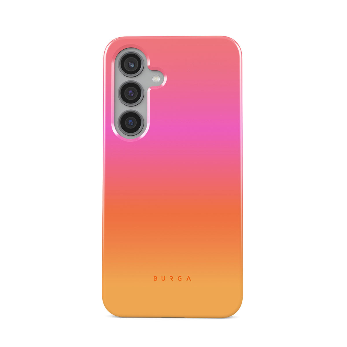 This Sunset Club Samsung Galaxy S24 Plus phone case captures the mesmerizing hues of a fading sun, blending fiery oranges and passionate pinks that dance like the horizon at dusk. It's an everyday tribute to the light’s farewell kiss.