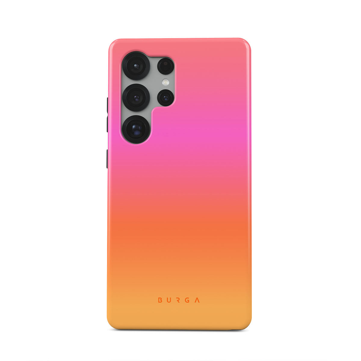 This Sunset Club Samsung Galaxy S25 Ultra phone case captures the mesmerizing hues of a fading sun, blending fiery oranges and passionate pinks that dance like the horizon at dusk. It's an everyday tribute to the light’s farewell kiss.