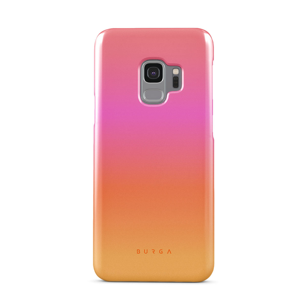 This Sunset Club Samsung Galaxy S9 phone case captures the mesmerizing hues of a fading sun, blending fiery oranges and passionate pinks that dance like the horizon at dusk. It's an everyday tribute to the light’s farewell kiss.