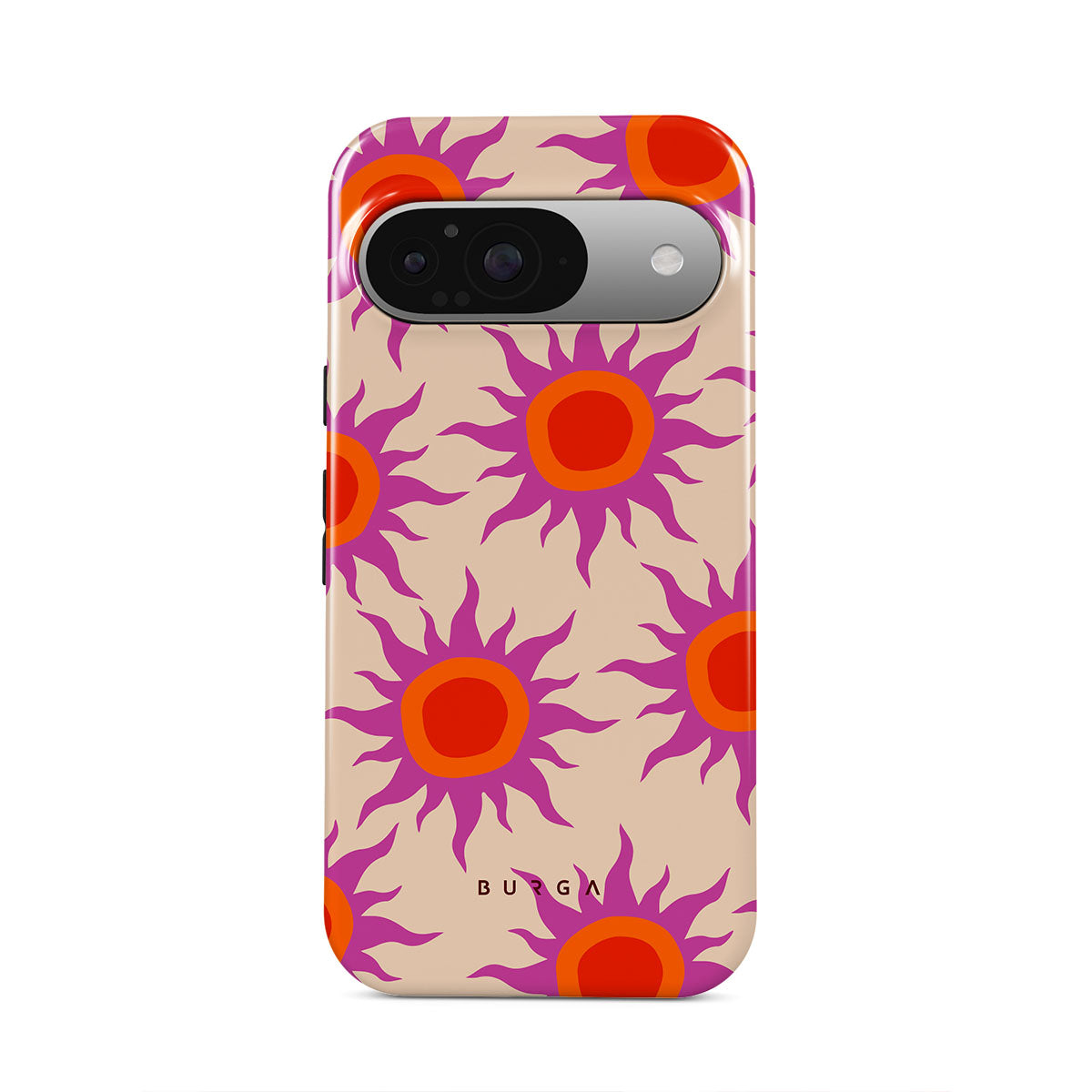 Discover the radiant serenity of the Sunset Glow design, a harmonious blend of soothing pastels and fiery suns. Vivacious viva magenta rays add a playful touch, perfectly balancing tranquility and dynamism. More than just a fashion accessory, this striking Google Pixel 9 phone case mirrors your unique personality and zest for life.