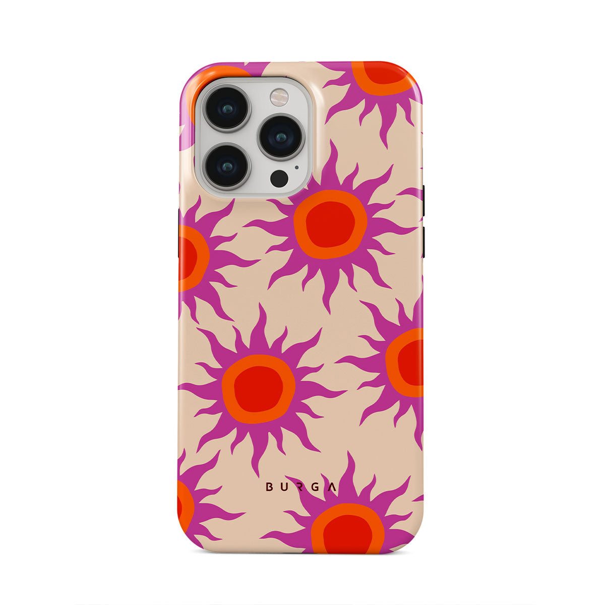 Discover the radiant serenity of the Sunset Glow design, a harmonious blend of soothing pastels and fiery suns. Vivacious viva magenta rays add a playful touch, perfectly balancing tranquility and dynamism. More than just a fashion accessory, this striking iPhone 14 Pro Max phone case mirrors your unique personality and zest for life.