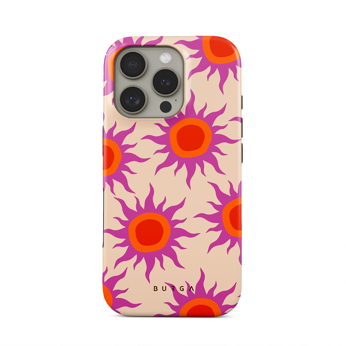 Discover the radiant serenity of the Sunset Glow design, a harmonious blend of soothing pastels and fiery suns. Vivacious viva magenta rays add a playful touch, perfectly balancing tranquility and dynamism. More than just a fashion accessory, this striking iPhone 16 Pro phone case mirrors your unique personality and zest for life.
