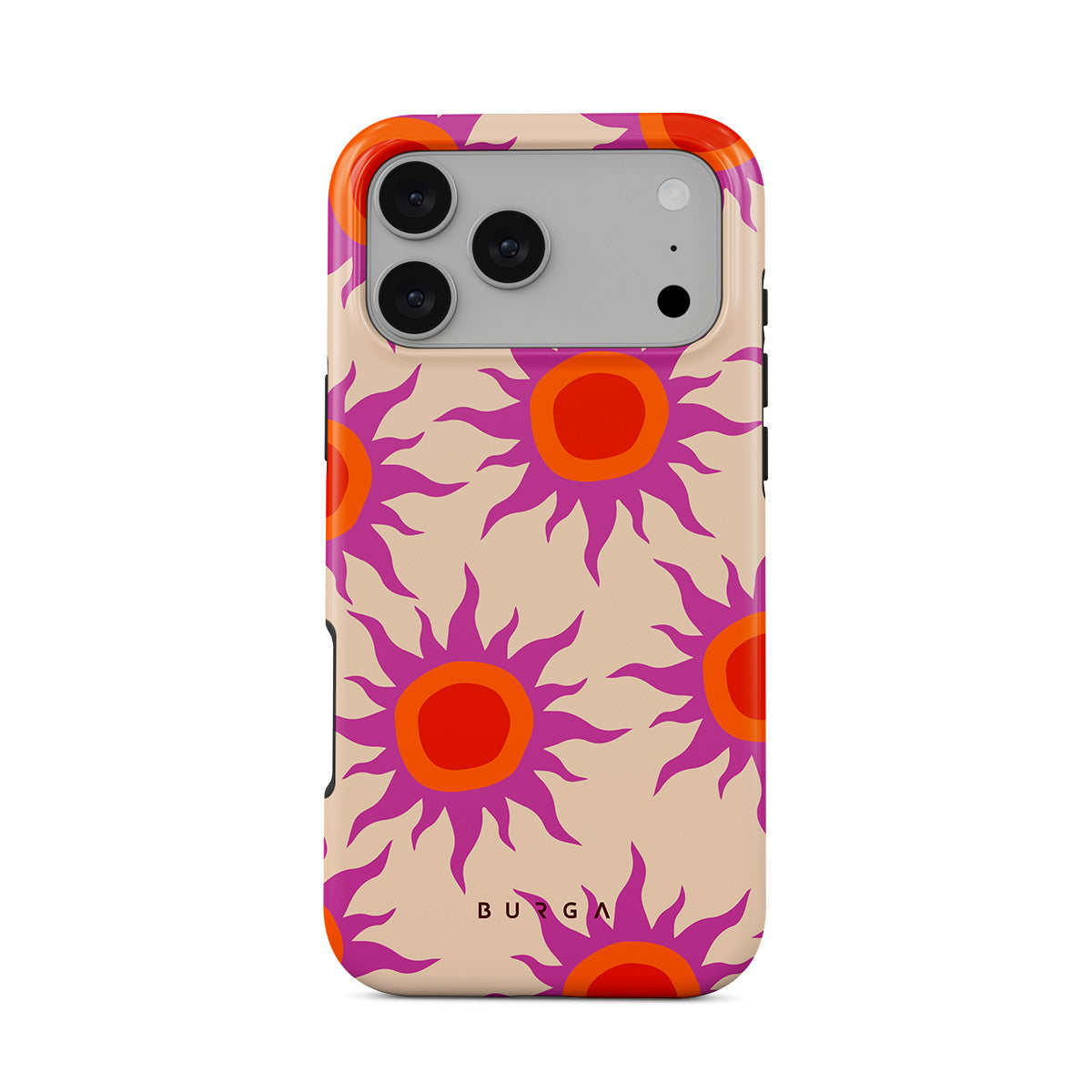 Discover the radiant serenity of the Sunset Glow design, a harmonious blend of soothing pastels and fiery suns. Vivacious viva magenta rays add a playful touch, perfectly balancing tranquility and dynamism. More than just a fashion accessory, this striking iPhone 17 Pro Max phone case mirrors your unique personality and zest for life.
