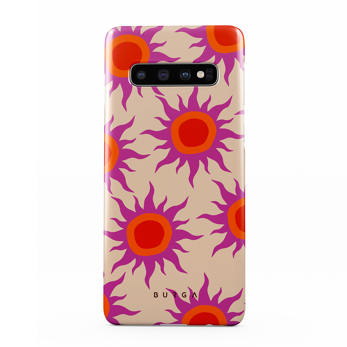 Discover the radiant serenity of the Sunset Glow design, a harmonious blend of soothing pastels and fiery suns. Vivacious viva magenta rays add a playful touch, perfectly balancing tranquility and dynamism. More than just a fashion accessory, this striking Samsung Galaxy S10 Plus phone case mirrors your unique personality and zest for life.