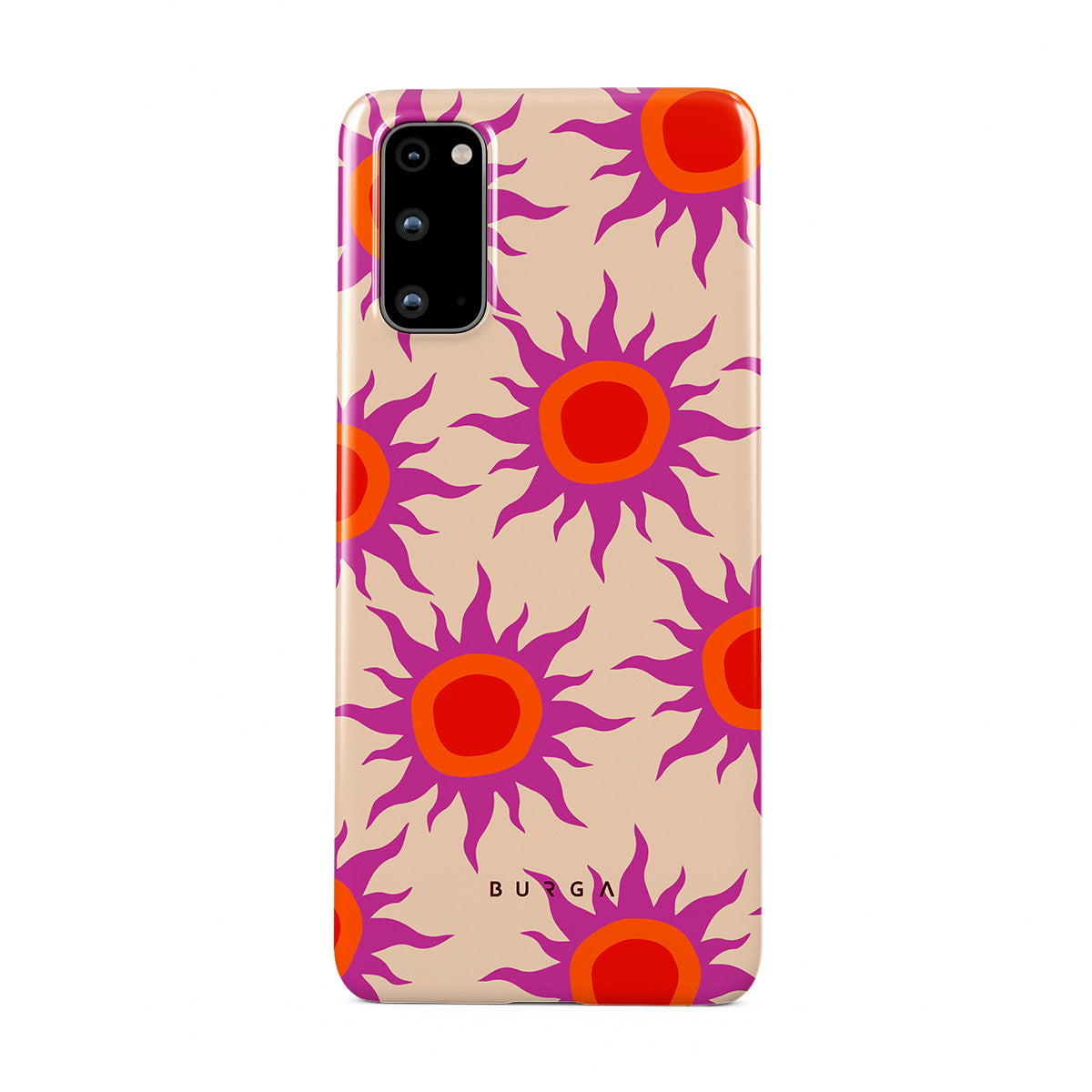 Discover the radiant serenity of the Sunset Glow design, a harmonious blend of soothing pastels and fiery suns. Vivacious viva magenta rays add a playful touch, perfectly balancing tranquility and dynamism. More than just a fashion accessory, this striking Samsung Galaxy S20 4G / 5G phone case mirrors your unique personality and zest for life.