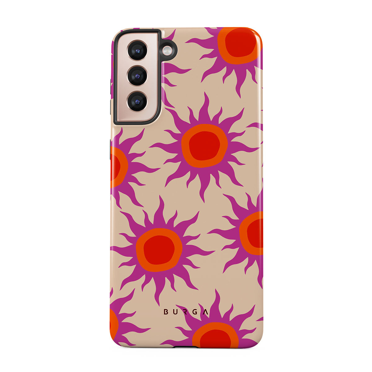 Discover the radiant serenity of the Sunset Glow design, a harmonious blend of soothing pastels and fiery suns. Vivacious viva magenta rays add a playful touch, perfectly balancing tranquility and dynamism. More than just a fashion accessory, this striking Samsung Galaxy S21 Plus phone case mirrors your unique personality and zest for life.
