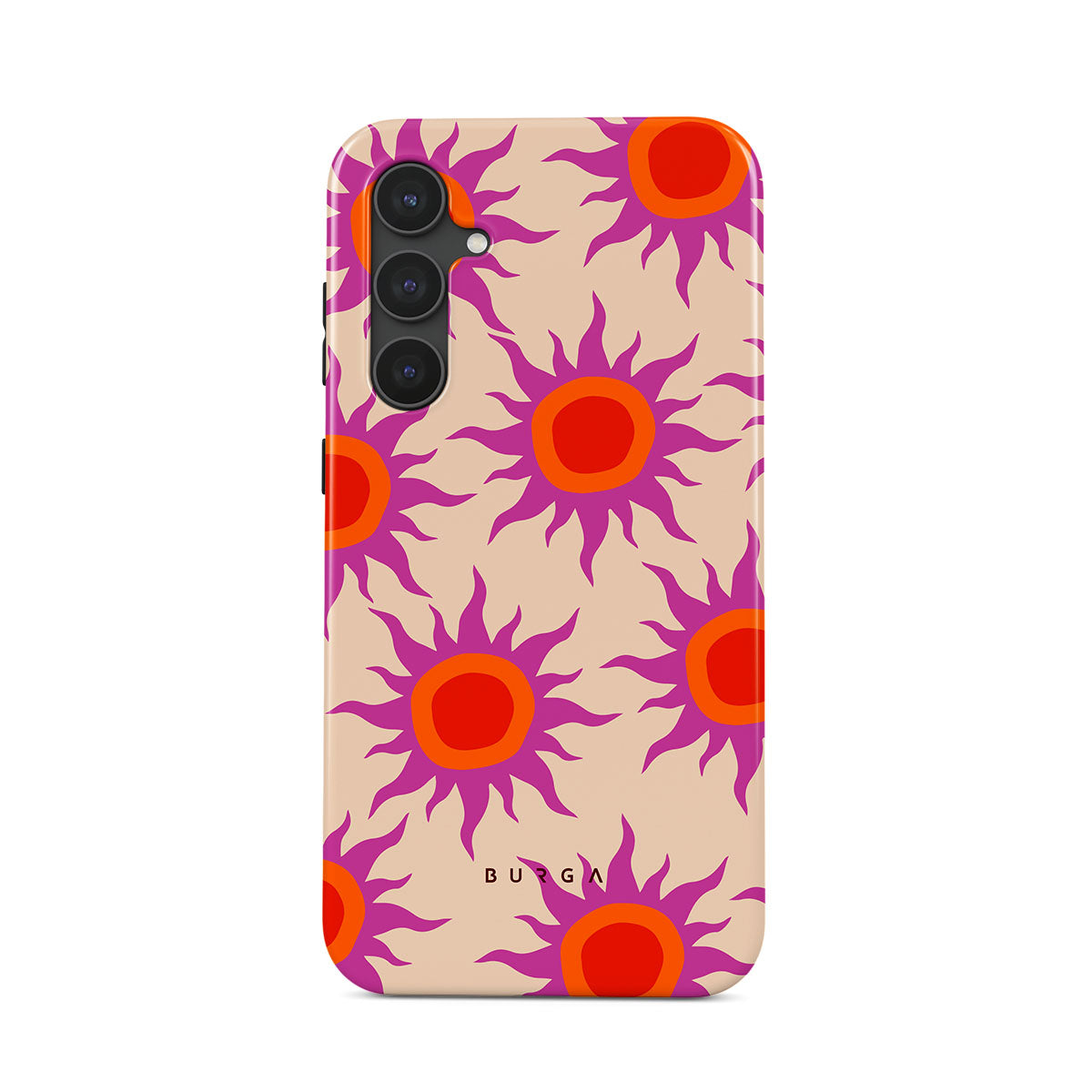 Discover the radiant serenity of the Sunset Glow design, a harmonious blend of soothing pastels and fiery suns. Vivacious viva magenta rays add a playful touch, perfectly balancing tranquility and dynamism. More than just a fashion accessory, this striking Samsung Galaxy S23 FE phone case mirrors your unique personality and zest for life.