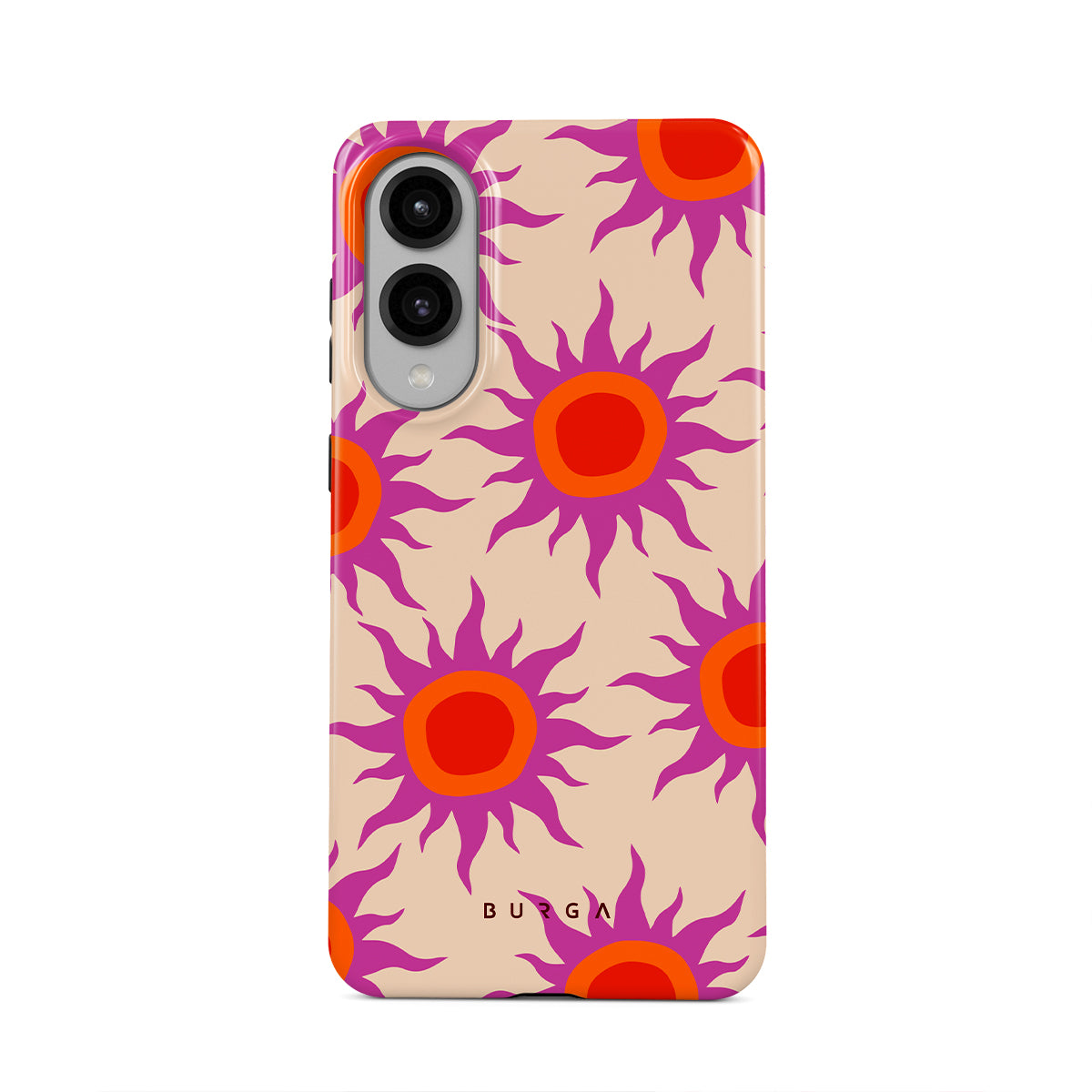 Discover the radiant serenity of the Sunset Glow design, a harmonious blend of soothing pastels and fiery suns. Vivacious viva magenta rays add a playful touch, perfectly balancing tranquility and dynamism. More than just a fashion accessory, this striking Samsung Galaxy S25 Edge phone case mirrors your unique personality and zest for life.