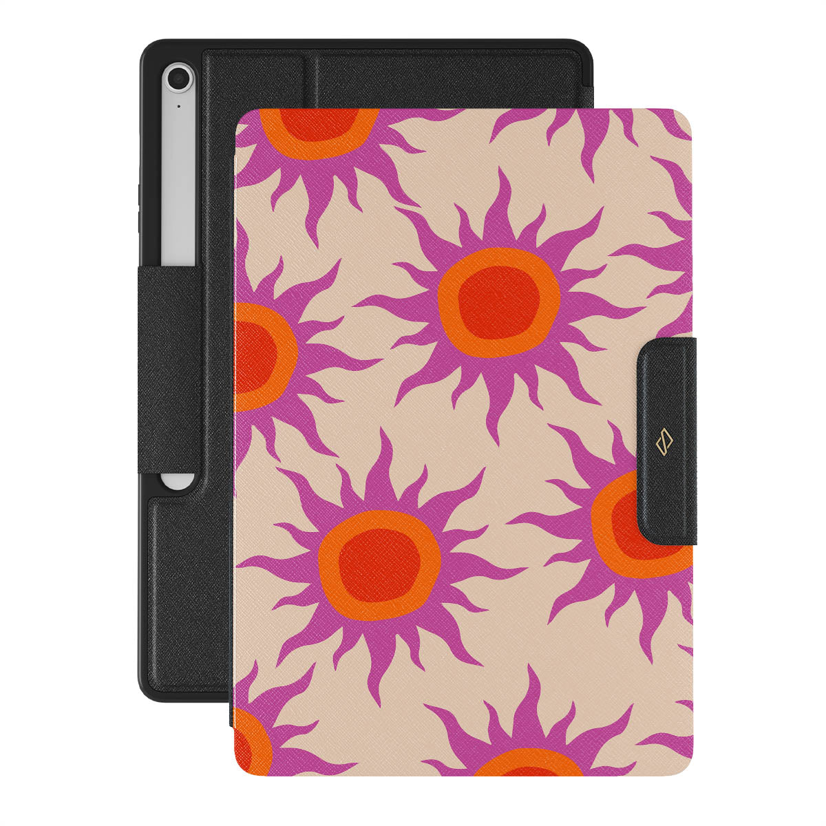 Discover the radiant serenity of the Sunset Glow design, a harmonious blend of soothing pastels and fiery suns. Vivacious viva magenta rays add a playful touch, perfectly balancing tranquility and dynamism. More than just a fashion accessory, this striking Samsung Galaxy Tab S10+ FE folio case mirrors your unique personality and zest for life.