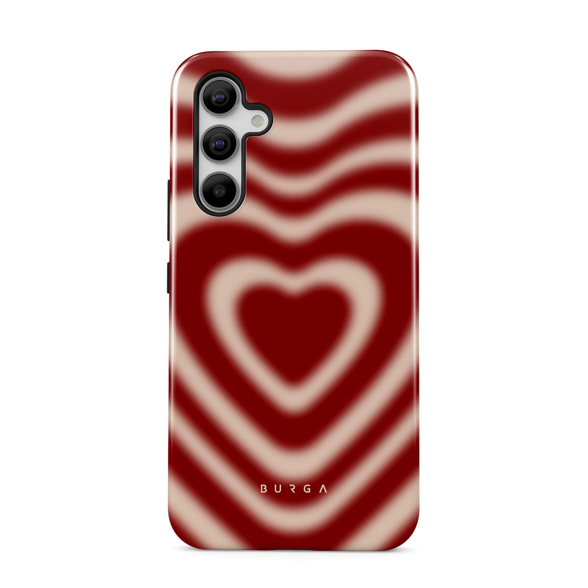 A hypnotic swirl, where deep shades of red dance together to form an iconic heart. Our Sweet Affair Samsung Galaxy A55 Case phone case design merges passion with elegance, making it an evergreen choice for those who love without bounds.