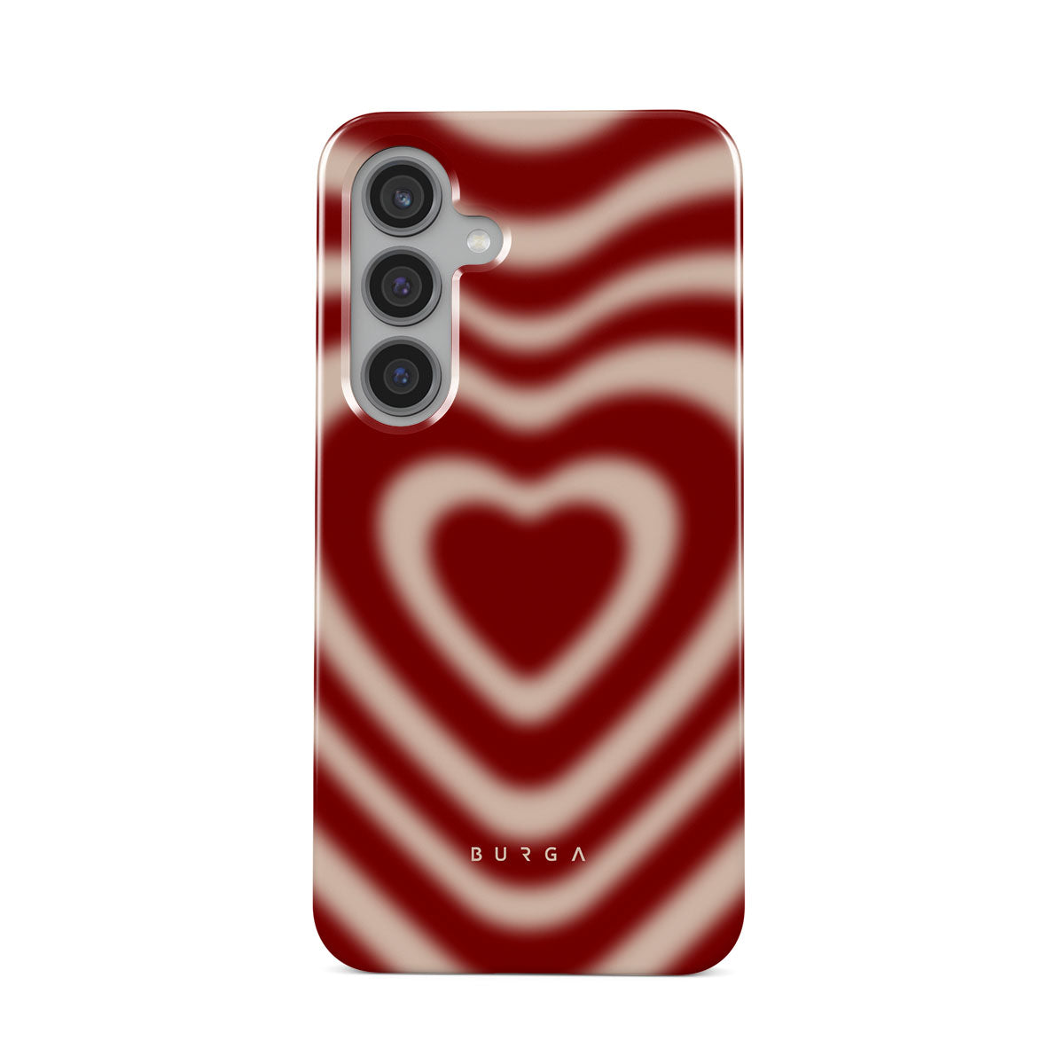 A hypnotic swirl, where deep shades of red dance together to form an iconic heart. Our Sweet Affair Samsung Galaxy S24 FE Case phone case design merges passion with elegance, making it an evergreen choice for those who love without bounds.