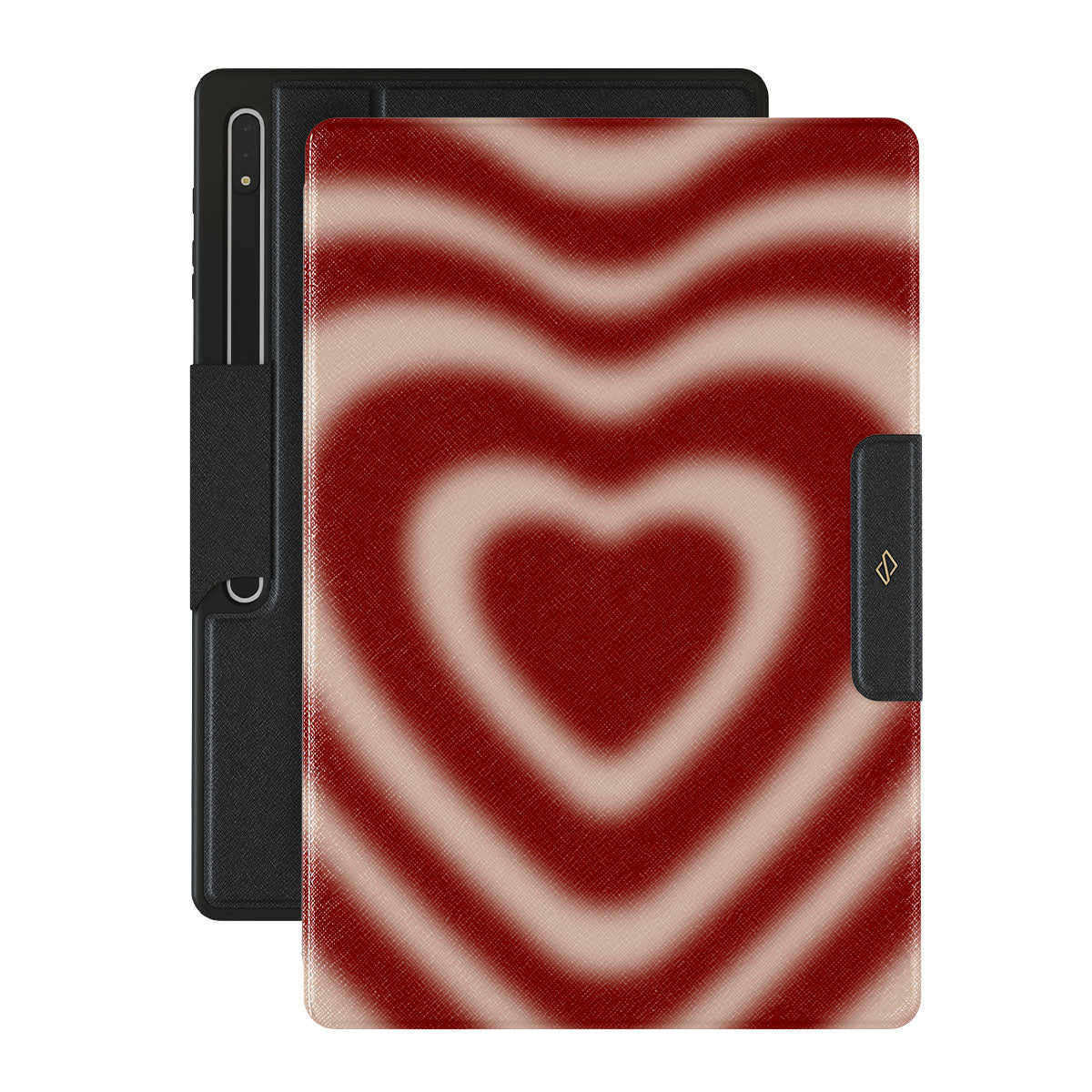 A hypnotic swirl, where deep shades of red dance together to form an iconic heart. Our Sweet Affair Samsung Galaxy Tab S10 Ultra folio case design merges passion with elegance, making it an evergreen choice for those who love without bounds.