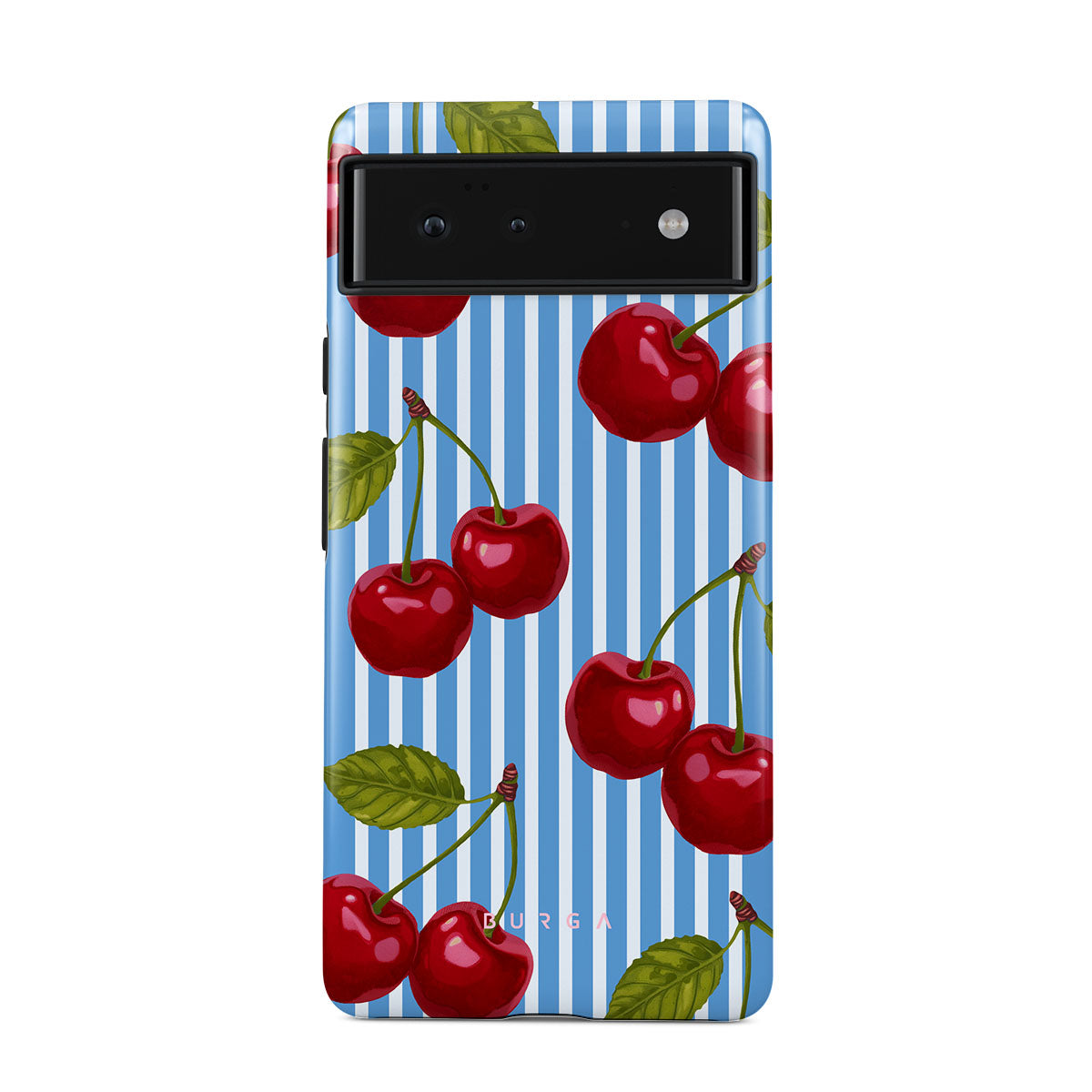 Cherries dangle like earrings from blue skies, a fun reminder of that first bite of summer, juicy and bursting with laughter. Meet our Sweet Moment Google Pixel 6 phone case design.