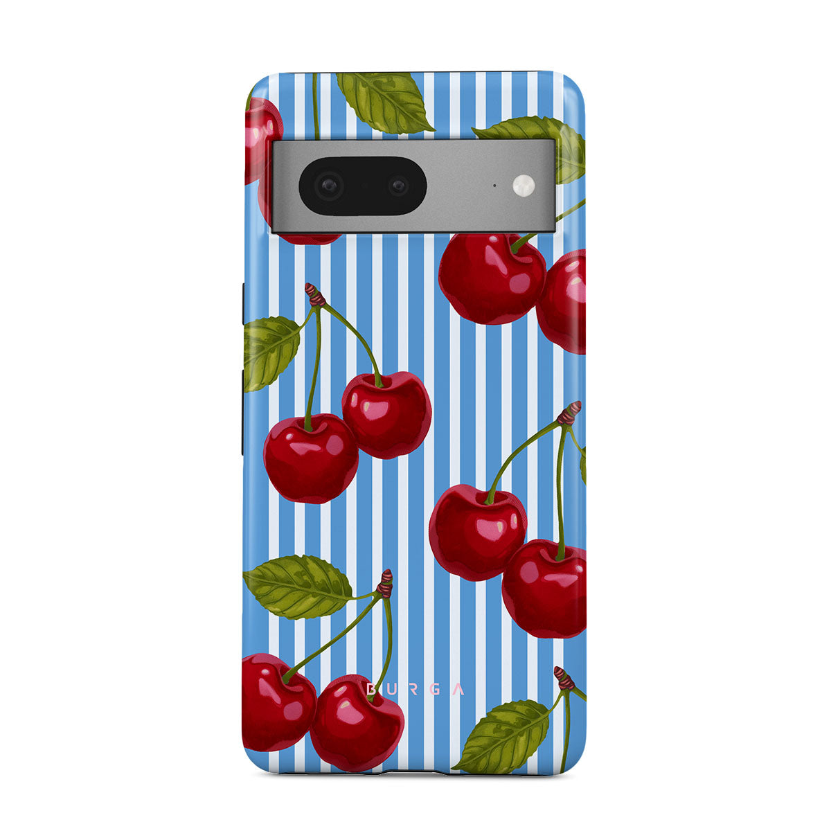 Cherries dangle like earrings from blue skies, a fun reminder of that first bite of summer, juicy and bursting with laughter. Meet our Sweet Moment Google Pixel 7a phone case design.