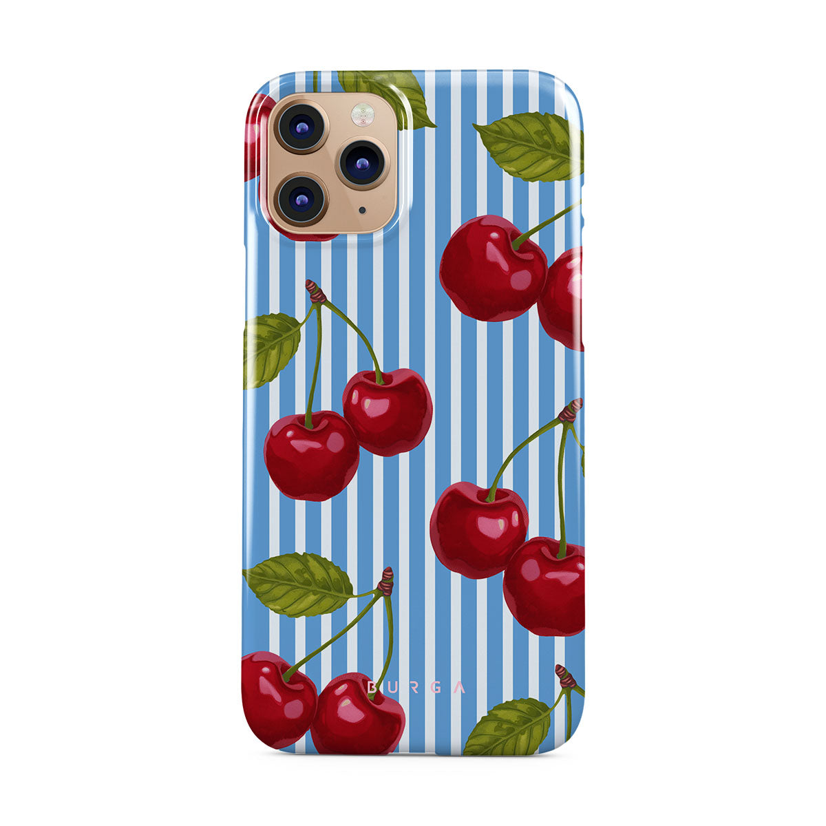 Cherries dangle like earrings from blue skies, a fun reminder of that first bite of summer, juicy and bursting with laughter. Meet our Sweet Moment iPhone 11 Pro Max phone case design.