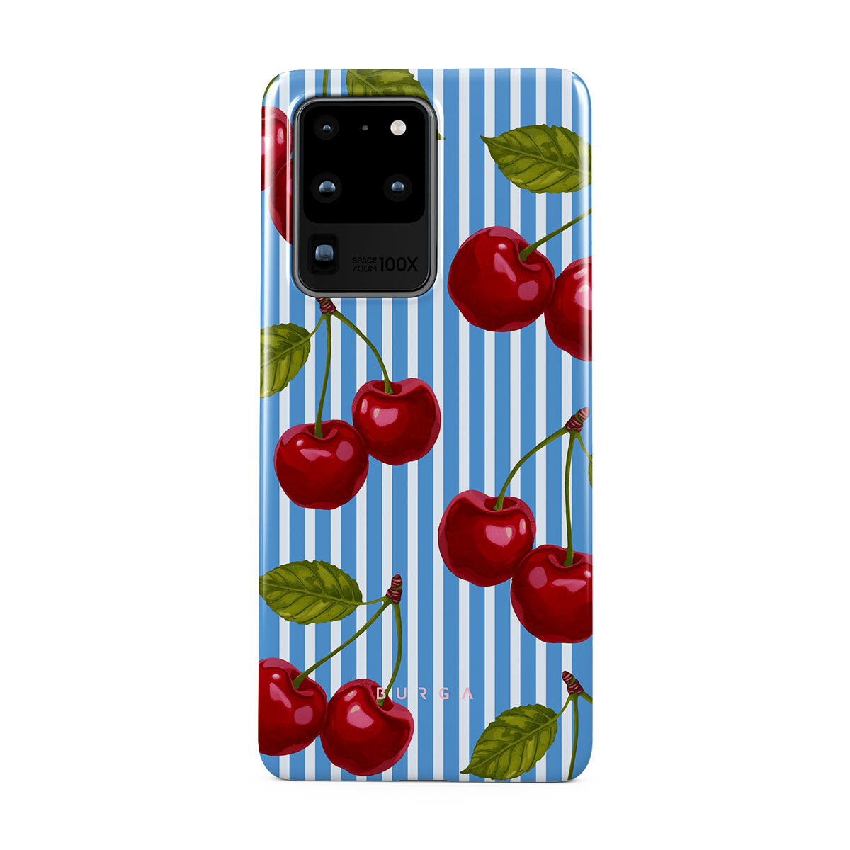 Cherries dangle like earrings from blue skies, a fun reminder of that first bite of summer, juicy and bursting with laughter. Meet our Sweet Moment Samsung Galaxy S20 Ultra 4G / 5G phone case design.