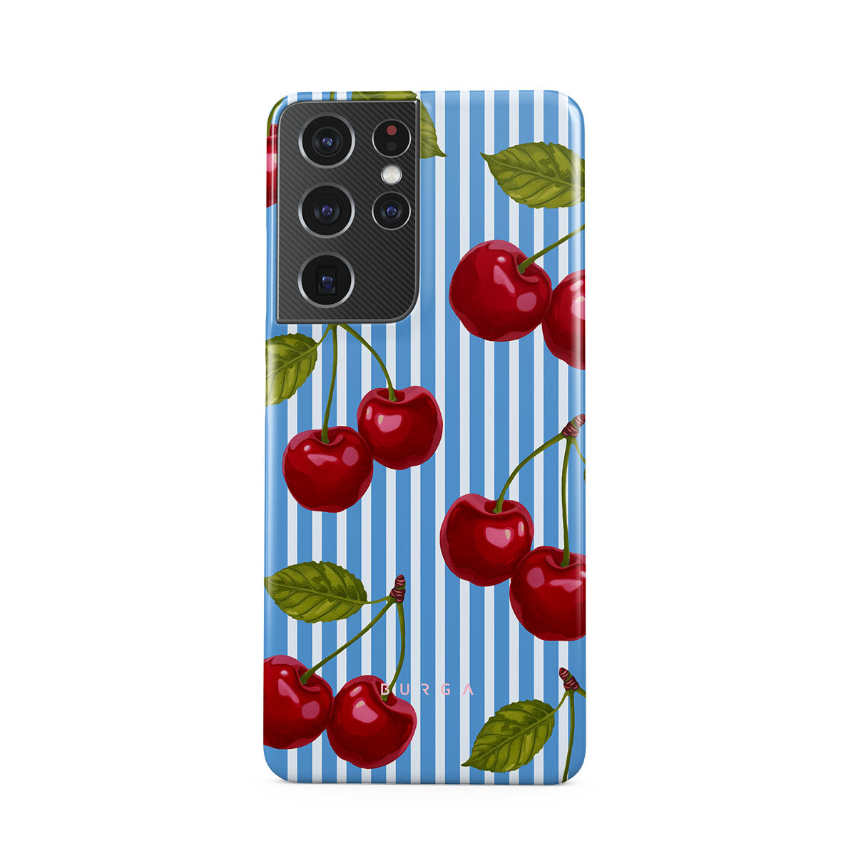 Cherries dangle like earrings from blue skies, a fun reminder of that first bite of summer, juicy and bursting with laughter. Meet our Sweet Moment Samsung Galaxy S21 Ultra phone case design.