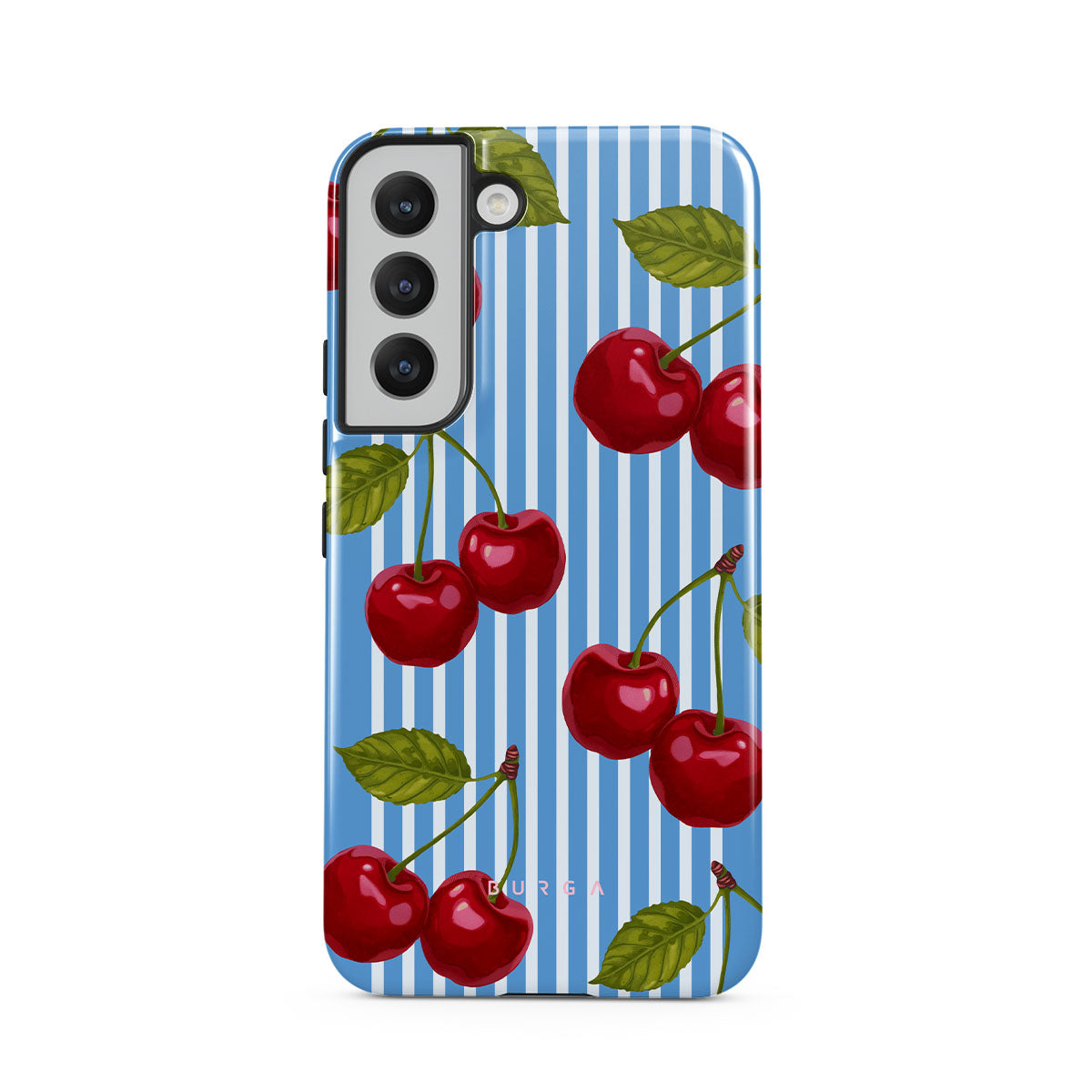 Cherries dangle like earrings from blue skies, a fun reminder of that first bite of summer, juicy and bursting with laughter. Meet our Sweet Moment Samsung Galaxy S22 Plus phone case design.