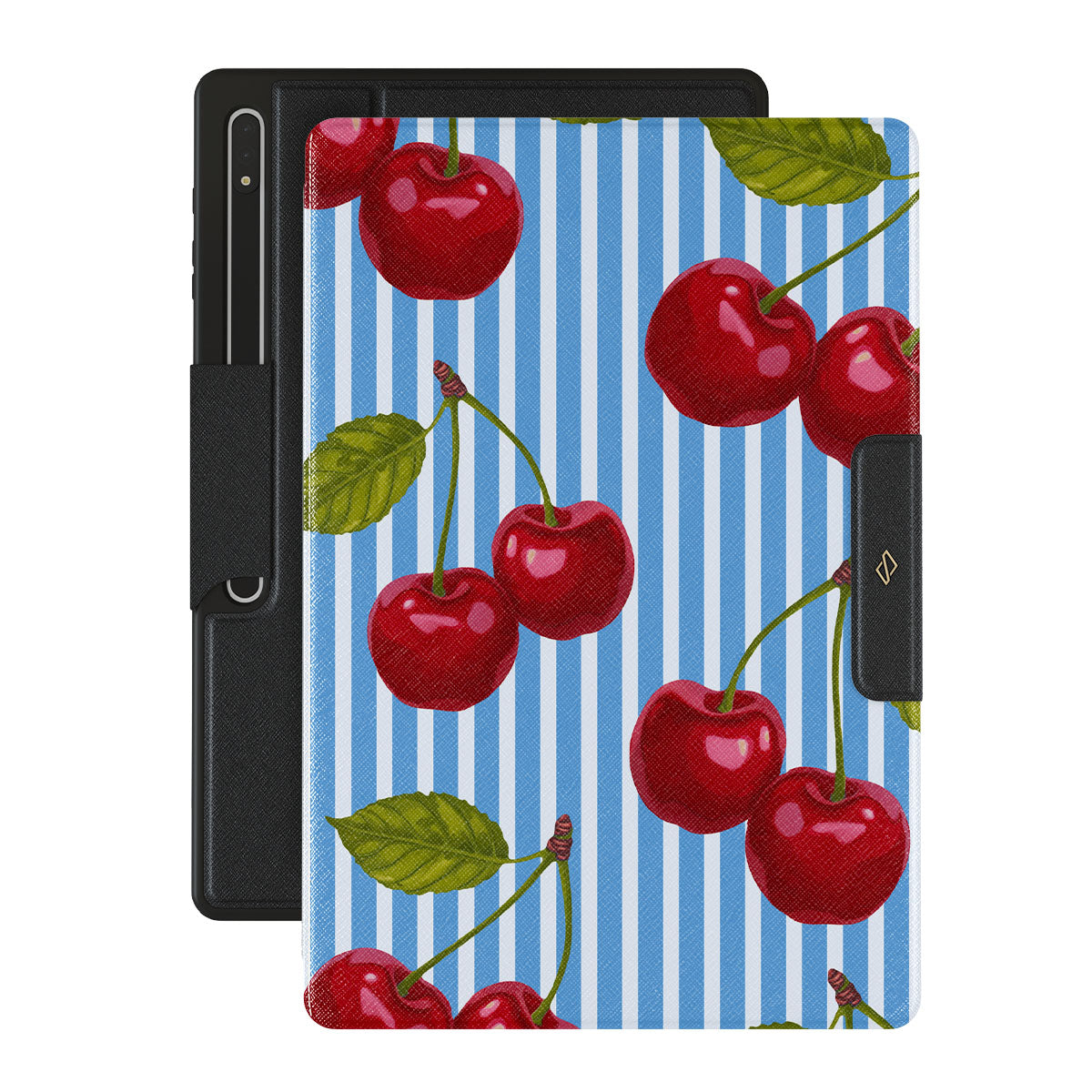Cherries dangle like earrings from blue skies, a fun reminder of that first bite of summer, juicy and bursting with laughter. Meet our Sweet Moment Samsung Galaxy Tab S9 Ultra folio case design.