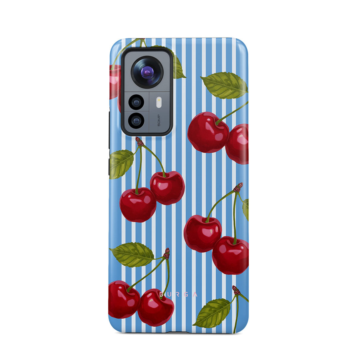 Cherries dangle like earrings from blue skies, a fun reminder of that first bite of summer, juicy and bursting with laughter. Meet our Sweet Moment Xiaomi 12 phone case design.