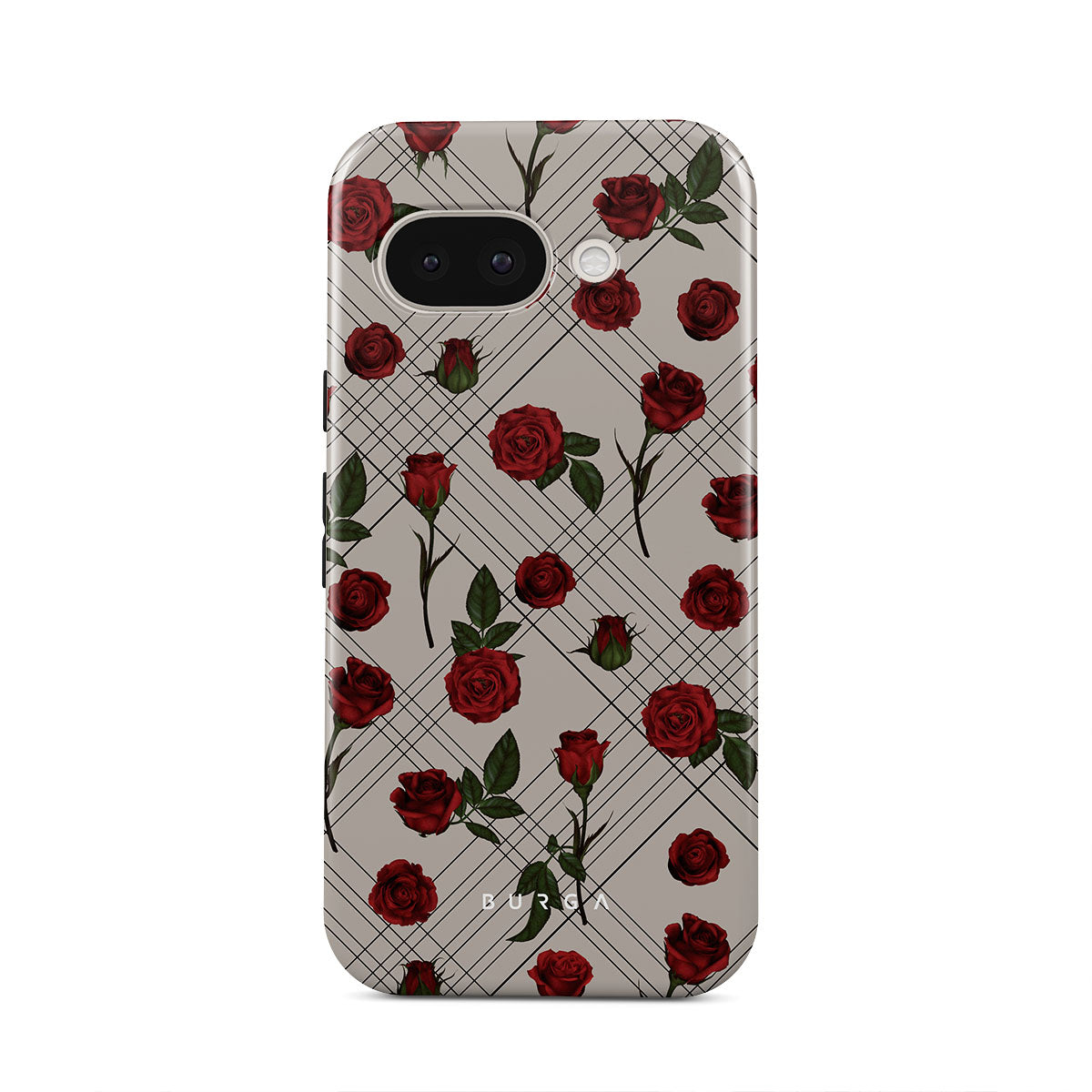 Embrace the subtle rebellion of our Sweet Sin Google Pixel 9a phone case design. On a muted nude-gray canvas, scattered small red roses hint at passions hidden beneath the surface. A design that balances the delicate with the daring. Crafted for those who find beauty in the unexpected and wear their edge with elegance.