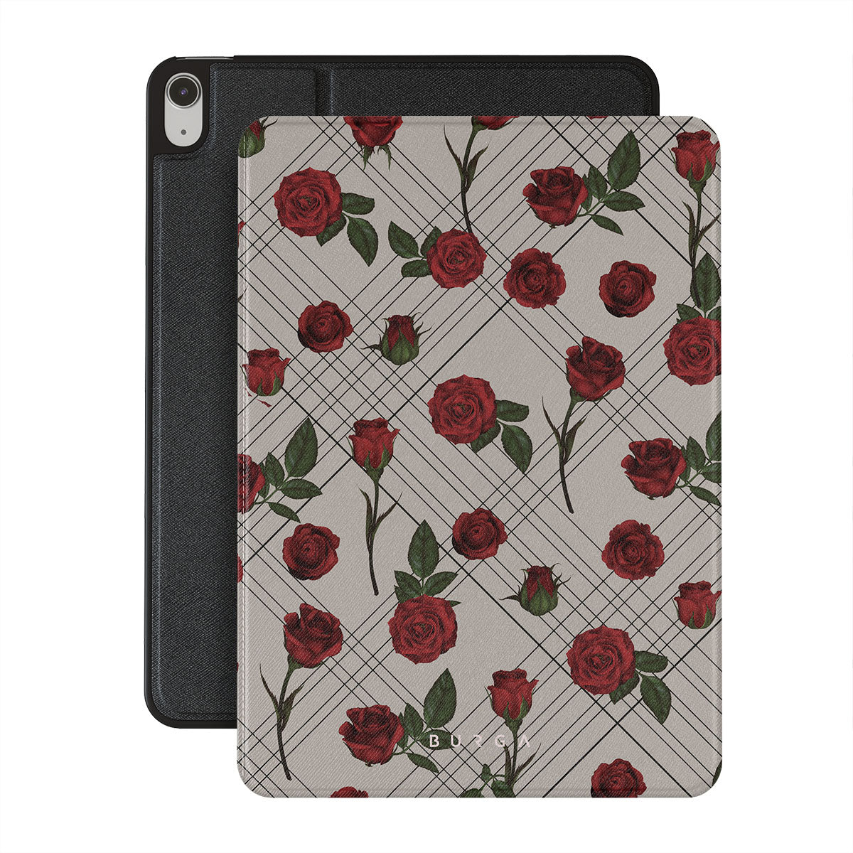 Embrace the subtle rebellion of our Sweet Sin iPad Air 11 (7th/6th Gen) folio case design. On a muted nude-gray canvas, scattered small red roses hint at passions hidden beneath the surface. A design that balances the delicate with the daring. Crafted for those who find beauty in the unexpected and wear their edge with elegance.