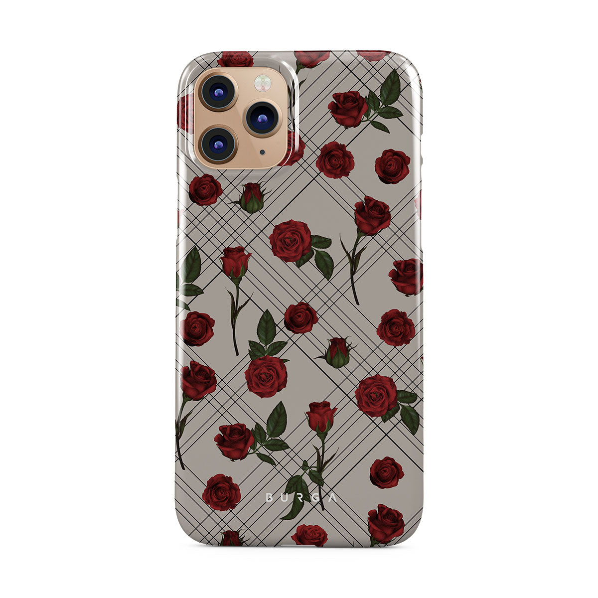 Embrace the subtle rebellion of our Sweet Sin iPhone 11 Pro Max phone case design. On a muted nude-gray canvas, scattered small red roses hint at passions hidden beneath the surface. A design that balances the delicate with the daring. Crafted for those who find beauty in the unexpected and wear their edge with elegance.