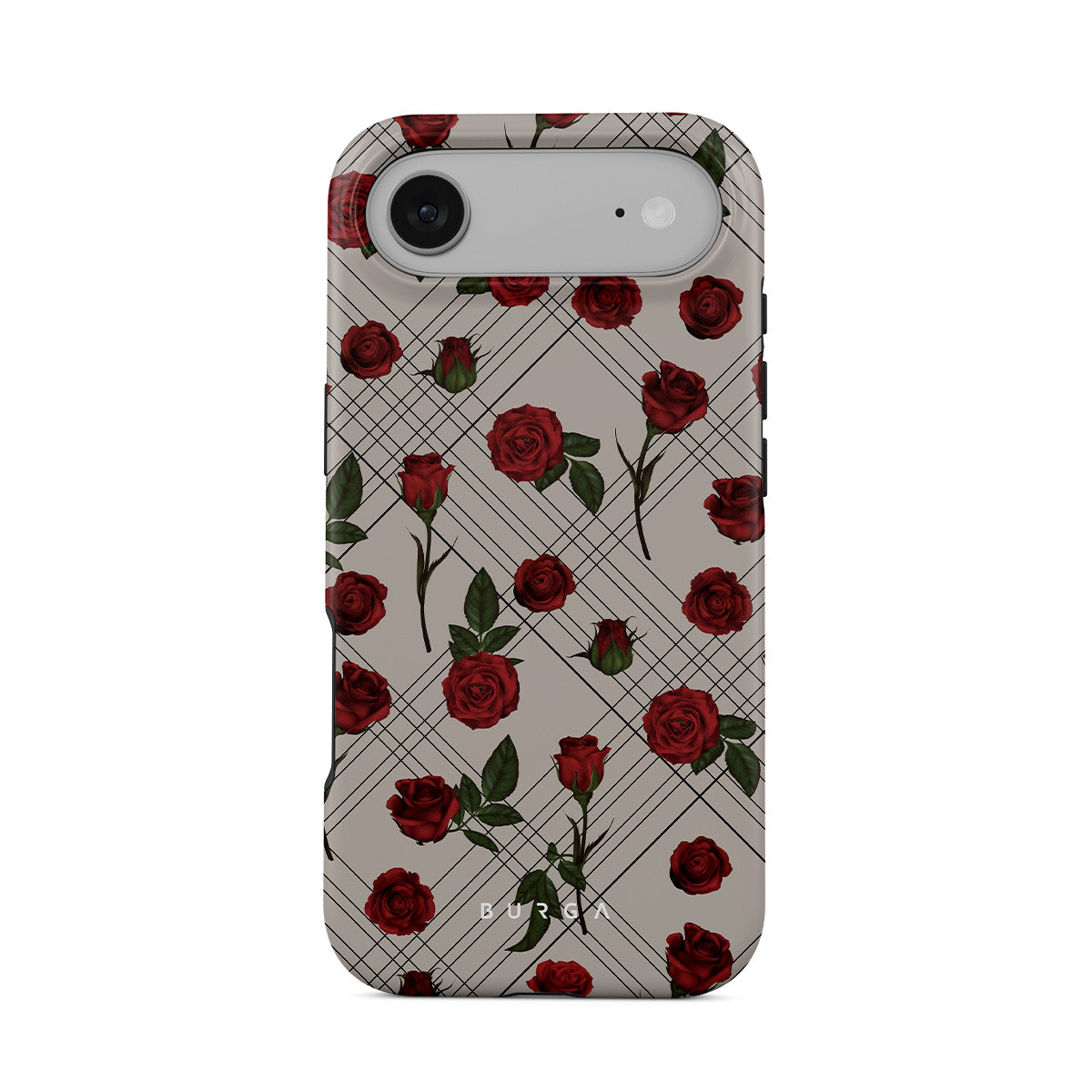 Embrace the subtle rebellion of our Sweet Sin iPhone Air phone case design. On a muted nude-gray canvas, scattered small red roses hint at passions hidden beneath the surface. A design that balances the delicate with the daring. Crafted for those who find beauty in the unexpected and wear their edge with elegance.