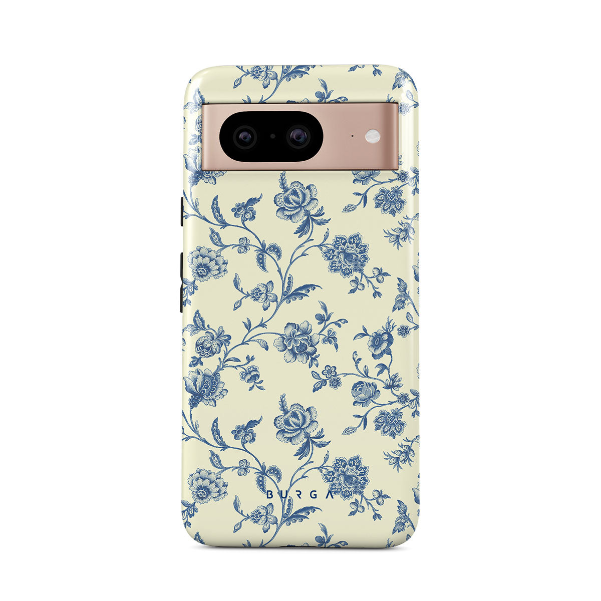 Hey, Sweetheart, here's a style secret: vintage blue flowers for that old-school charm. This Google Pixel 8 phone case design is perfect when you want to be sweet yet effortlessly cool.