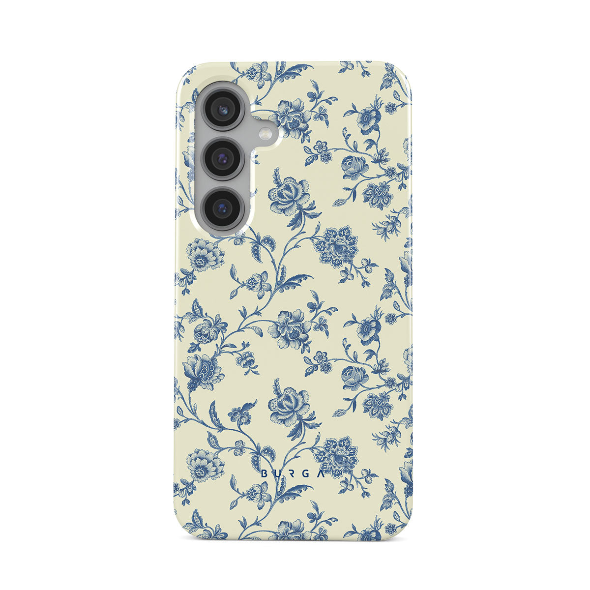 Hey, Sweetheart, here's a style secret: vintage blue flowers for that old-school charm. This Samsung Galaxy S24 FE phone case design is perfect when you want to be sweet yet effortlessly cool.