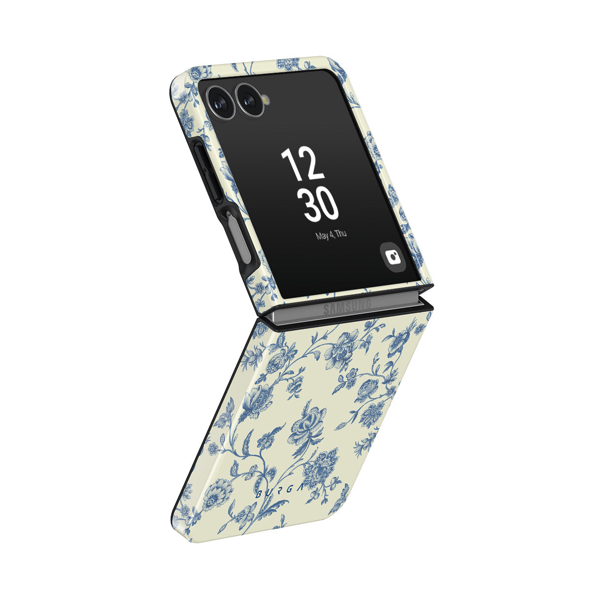 Hey, Sweetheart, here's a style secret: vintage blue flowers for that old-school charm. This Samsung Galaxy Z Flip 7 phone case design is perfect when you want to be sweet yet effortlessly cool.