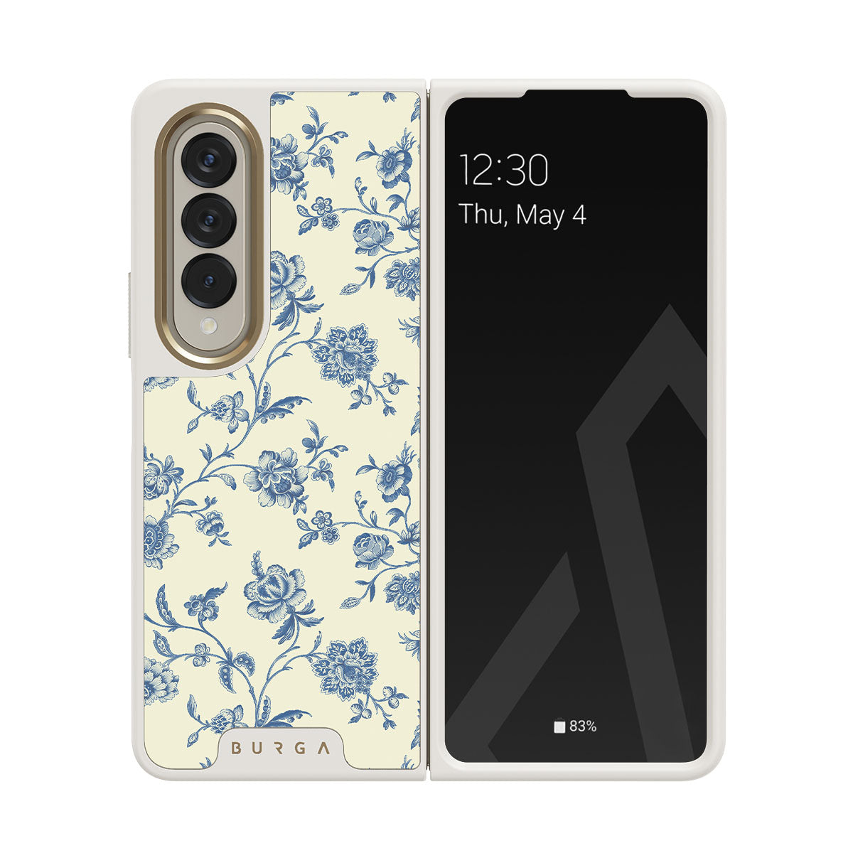 Hey, Sweetheart, here's a style secret: vintage blue flowers for that old-school charm. This Samsung Galaxy Z Fold 4 phone case design is perfect when you want to be sweet yet effortlessly cool.