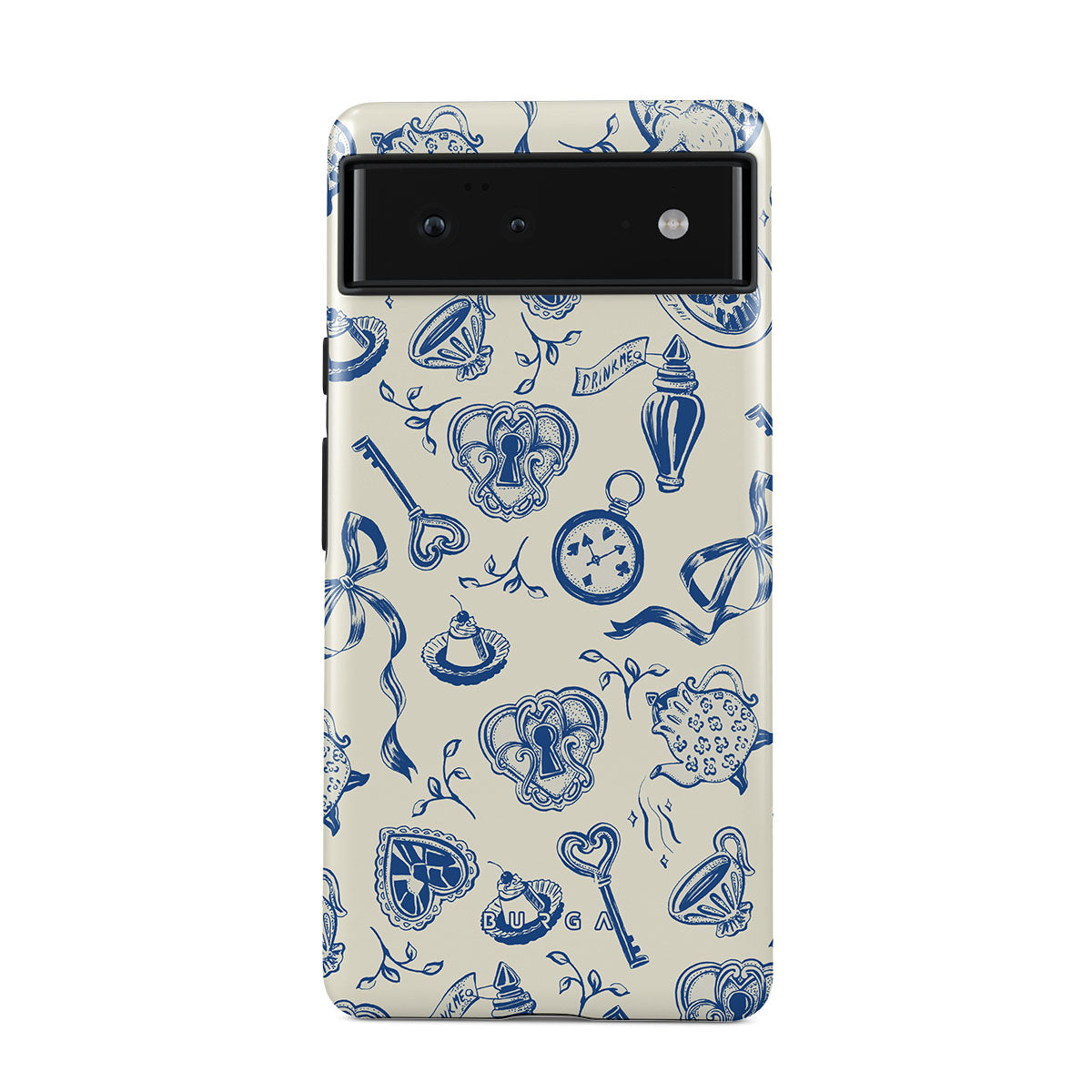 The Tea Party Google Pixel 6 Pro phone case design is a porcelain puzzle—ribbons tangled, time warped, rules rewritten. Sit down, pour a cup, but don’t expect things to make sense. They never do.