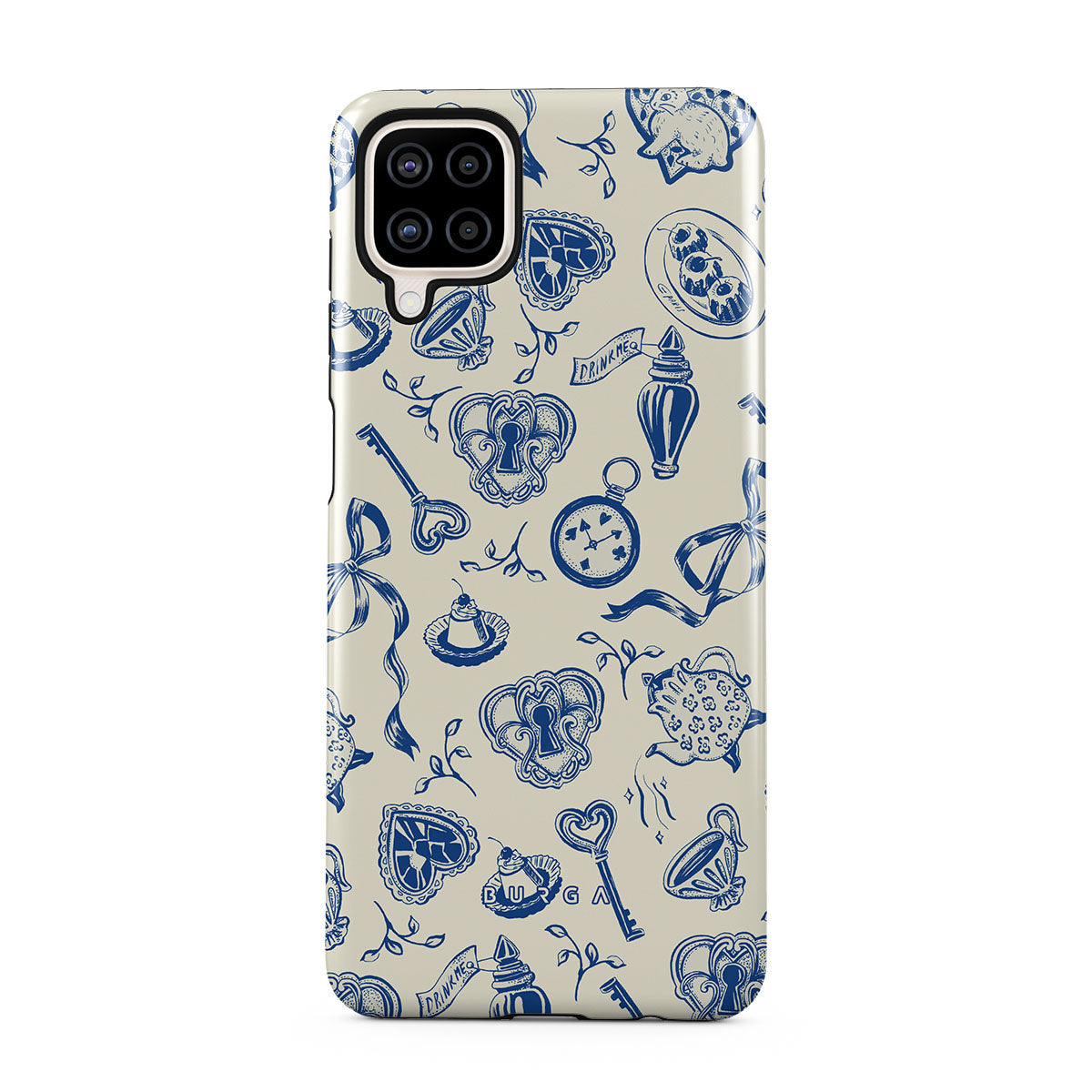 The Tea Party Samsung Galaxy A12 4G phone case design is a porcelain puzzle—ribbons tangled, time warped, rules rewritten. Sit down, pour a cup, but don’t expect things to make sense. They never do.