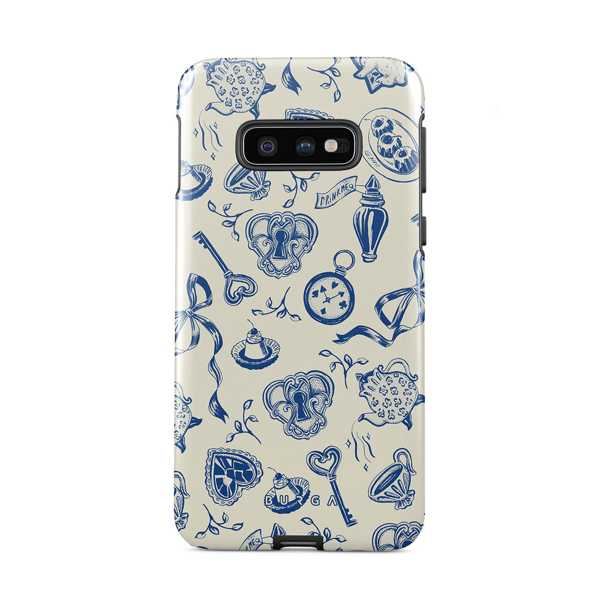 The Tea Party Samsung Galaxy S10E phone case design is a porcelain puzzle—ribbons tangled, time warped, rules rewritten. Sit down, pour a cup, but don’t expect things to make sense. They never do.