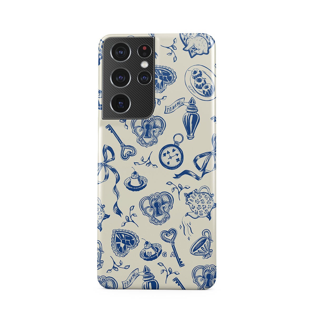The Tea Party Samsung Galaxy S21 Ultra phone case design is a porcelain puzzle—ribbons tangled, time warped, rules rewritten. Sit down, pour a cup, but don’t expect things to make sense. They never do.