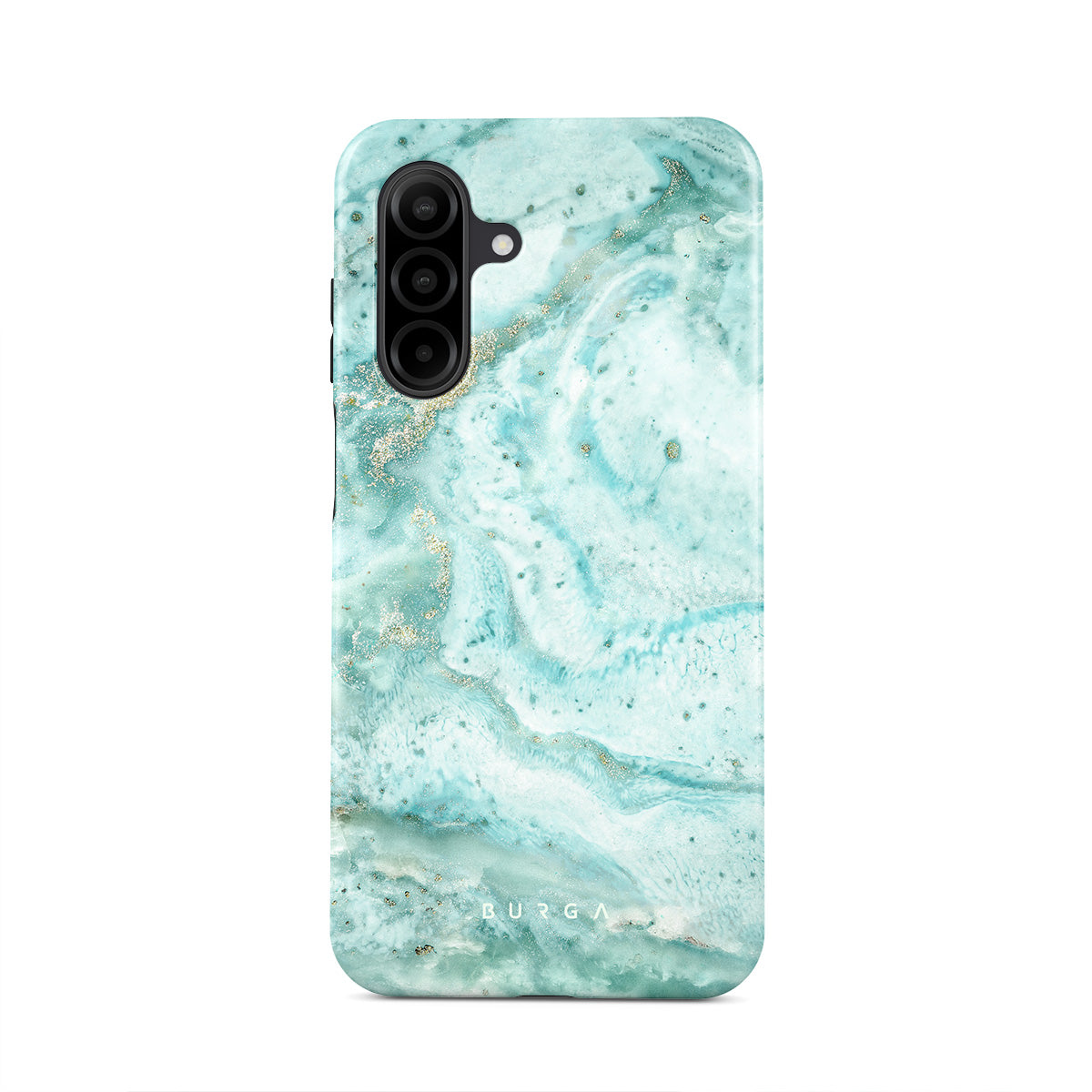 Our Uluwatu Waves Samsung Galaxy A26 5G phone case is an absolute teal dream. This phone cover features timeless and soft blue marble pattern enriched with golden color specks will surely remind you of a tropical beach teal waters while becoming a protective best friend for your cell phone.