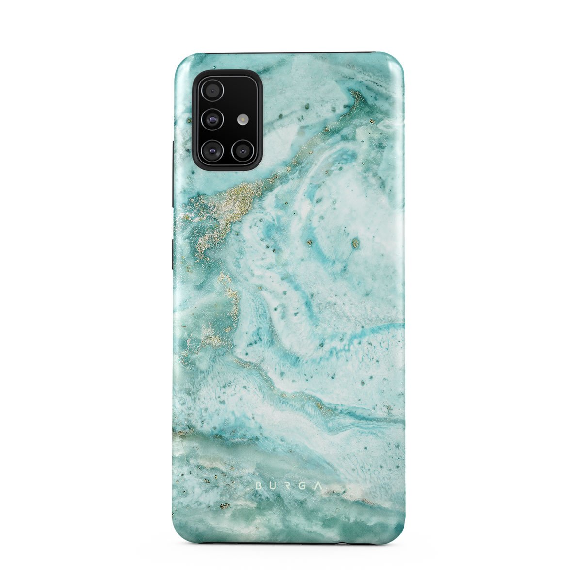Our Uluwatu Waves Samsung Galaxy A71 phone case is an absolute teal dream. This phone cover features timeless and soft blue marble pattern enriched with golden color specks will surely remind you of a tropical beach teal waters while becoming a protective best friend for your cell phone.