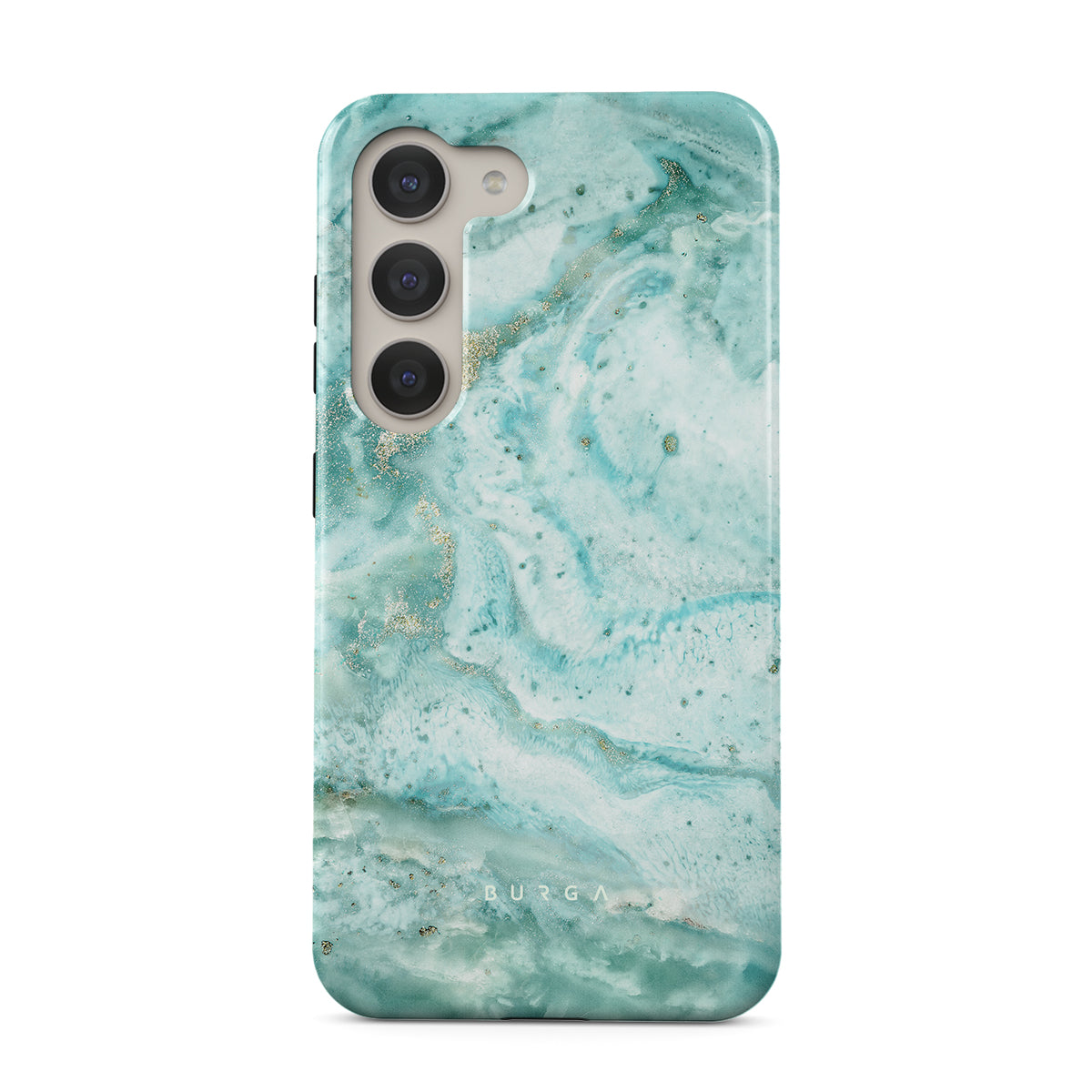 Our Uluwatu Waves Samsung Galaxy S23 phone case is an absolute teal dream. This phone cover features timeless and soft blue marble pattern enriched with golden color specks will surely remind you of a tropical beach teal waters while becoming a protective best friend for your cell phone.