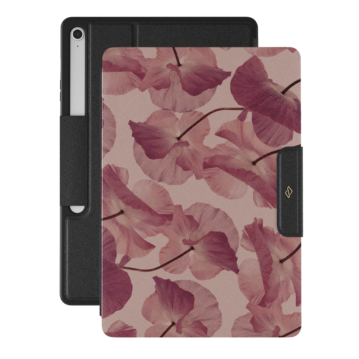 Capture the sweetness of a first love with Tender Kiss — a design that combines the delicate touch of petals on a soft pink background. This Samsung Galaxy Tab S10+ FE folio case design is crafted for those who cherish the tender moments and the dreamy whispers of a romantic past.
