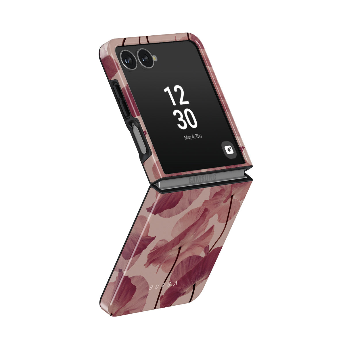 Capture the sweetness of a first love with Tender Kiss — a design that combines the delicate touch of petals on a soft pink background. This Samsung Galaxy Z Flip 7 phone case design is crafted for those who cherish the tender moments and the dreamy whispers of a romantic past.